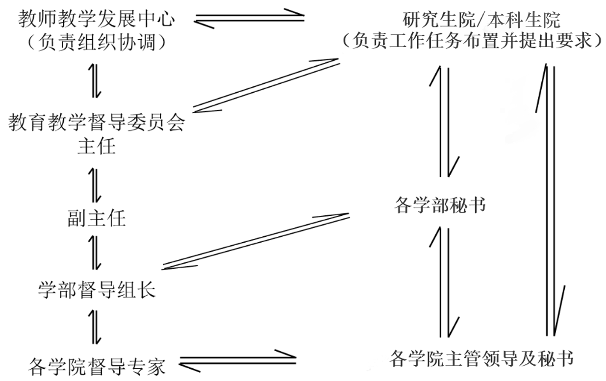 2.专项督导:以学部督导专家组为单位进行集中反馈。由各学部督导组长负责汇总督导意见,形成书面报告,在督导委员会组长会议上向主任、副主任进行反馈。对于重大教学问题,督导委员会需及时向教师教学发展中心、本科生院、研究生院反馈,并提出改进建议。