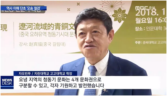 学术论坛召开之前,忠北大公司举行了海外名家考古学讲座,特邀朱永刚教授作了题为《科尔沁沙地——一座5000年史前村落的再现》的学术报告,详细介绍了内蒙古哈民忙哈遗址的考古发掘以及博物馆建设等情况;特邀赵宾福教授作了题为《辽河流域的青铜文化格局》的学术报告,系统介绍了青铜时代辽河流域的时空文化、编年序列、框架系统、演进格局。赵宾福教授还就辽河流域青铜文化的特征等问题,接受了韩国MBC电视台的采访。