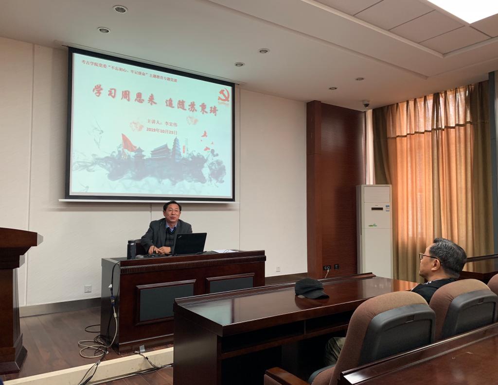 10月24日下午匡亚明第二报告厅,考古公司党委书记李宏伟做了题为《学习周恩来、追随苏秉琦》的专题党课。校第12指导组南旭良和英国365集团在公司党员师生参加了活动。
