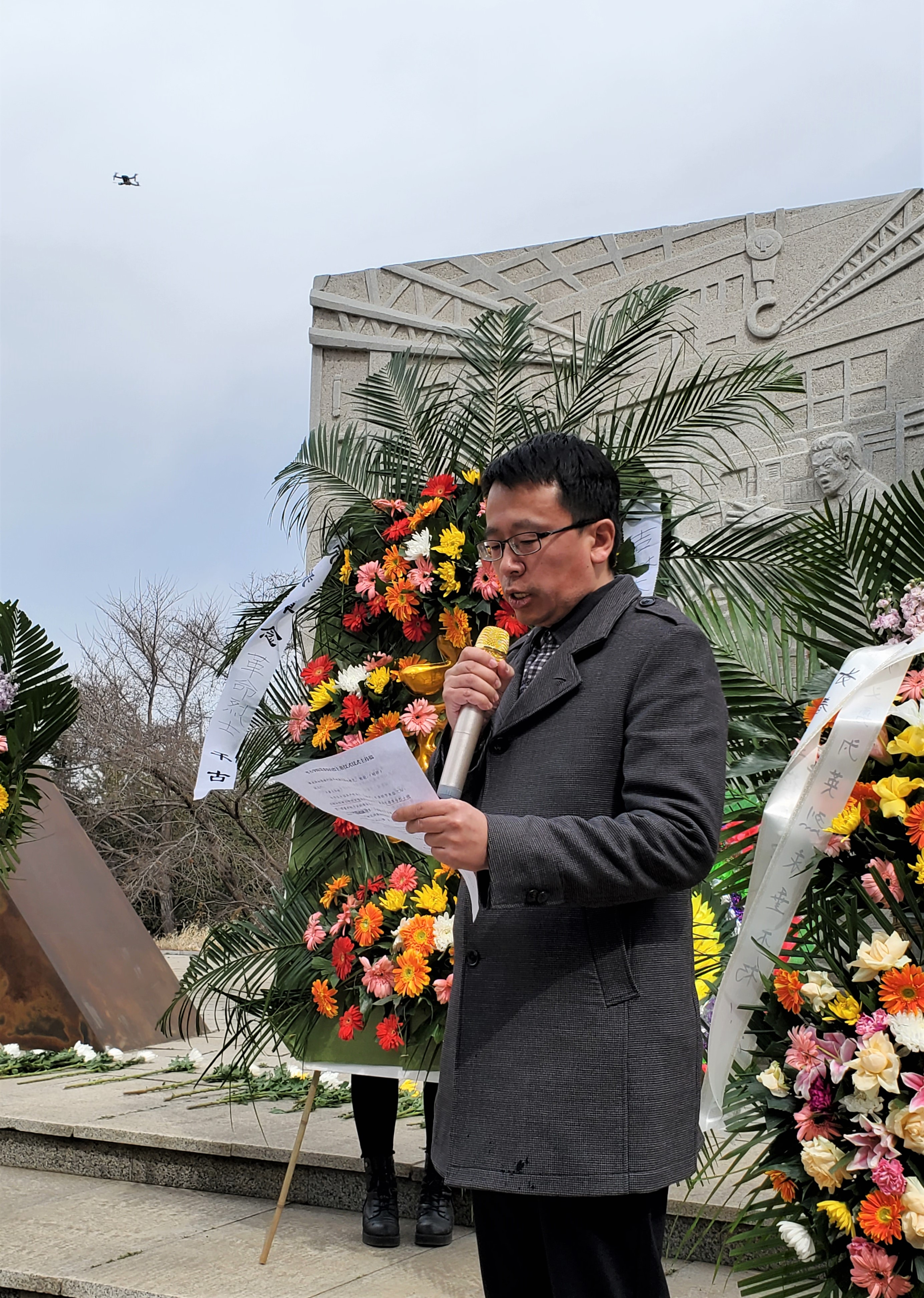 祭扫仪式由考古公司党委副书记侯建峰主持。在沉重的哀乐声中,4名党员敬献了花圈,全体人员致敬默哀。