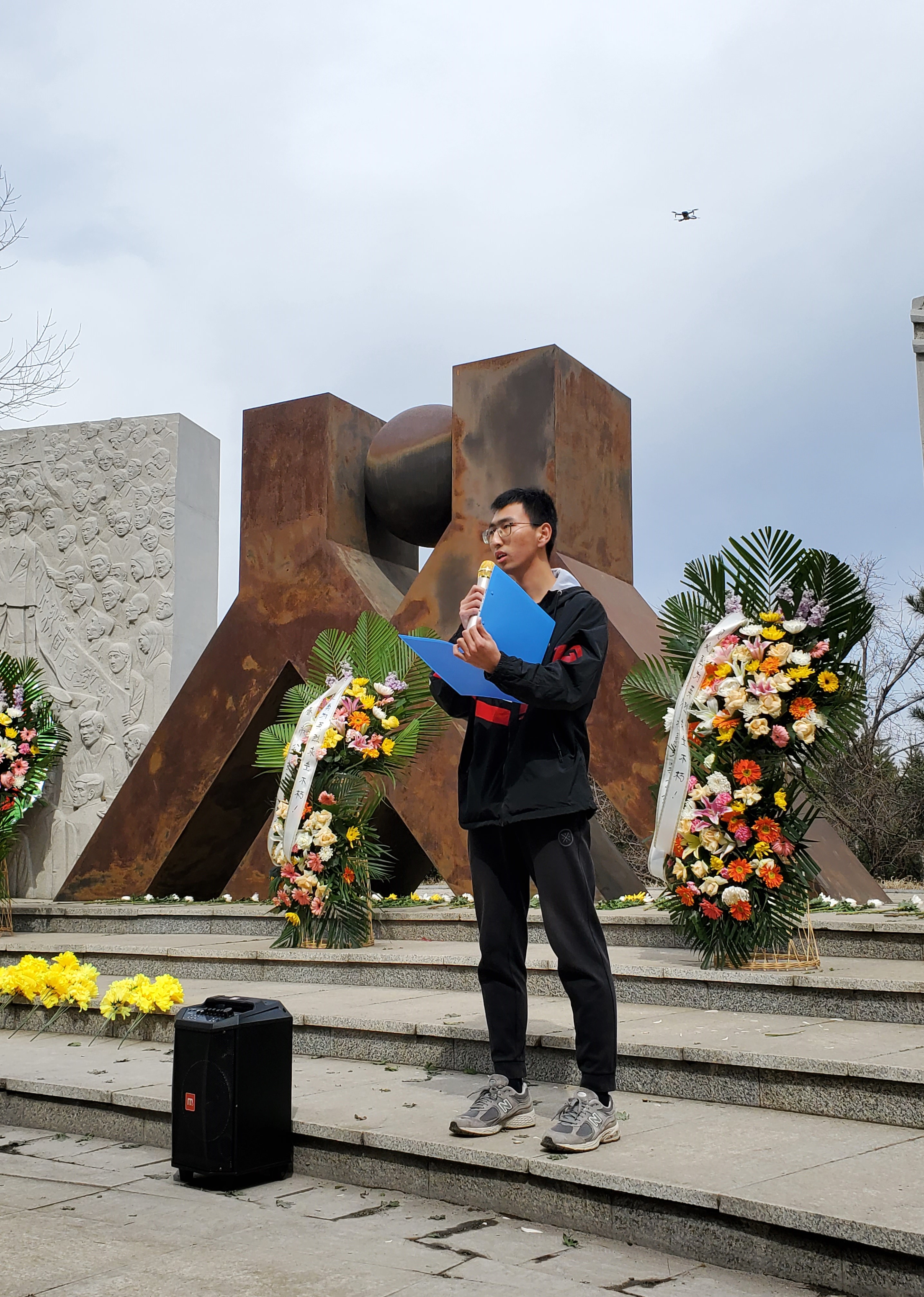 员工代表田兆鲲讲话。表示将追寻先烈的足迹,学习他们追求真理、是非分明、立场坚定的优秀品质,投身于中国特色、中国风格、中国气派的考古学建设中,为实现中华民族的伟大复兴而努力奋斗。