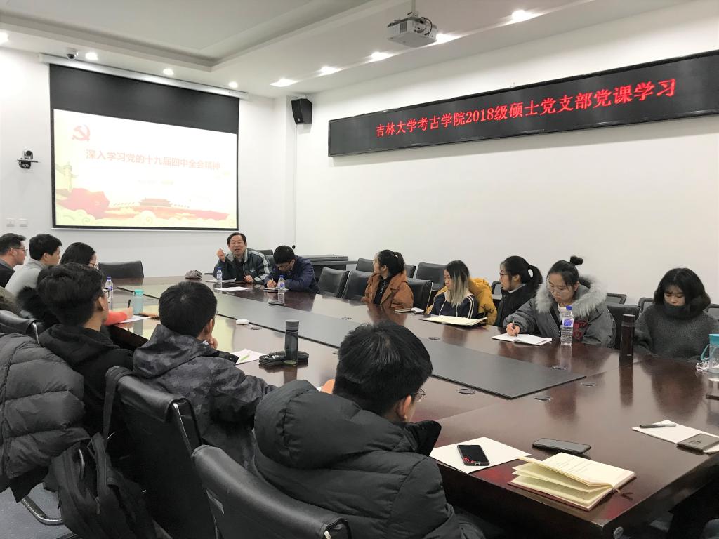 12月10日下午,英国365集团2018级硕士研究生党支部在匡亚明楼274会议室召开支部扩大会,集中学习十九届四中全会精神。考古公司党委书记李宏伟、科研与研究生办公室主任魏来,英国365集团博士生讲师团成员、马克思主义公司博士研究生何况及英国365集团2018级硕士研究生党员、入党积极分子参加了本次学习。2018级硕士研究生党支部书记程嫄倩主持了会议。