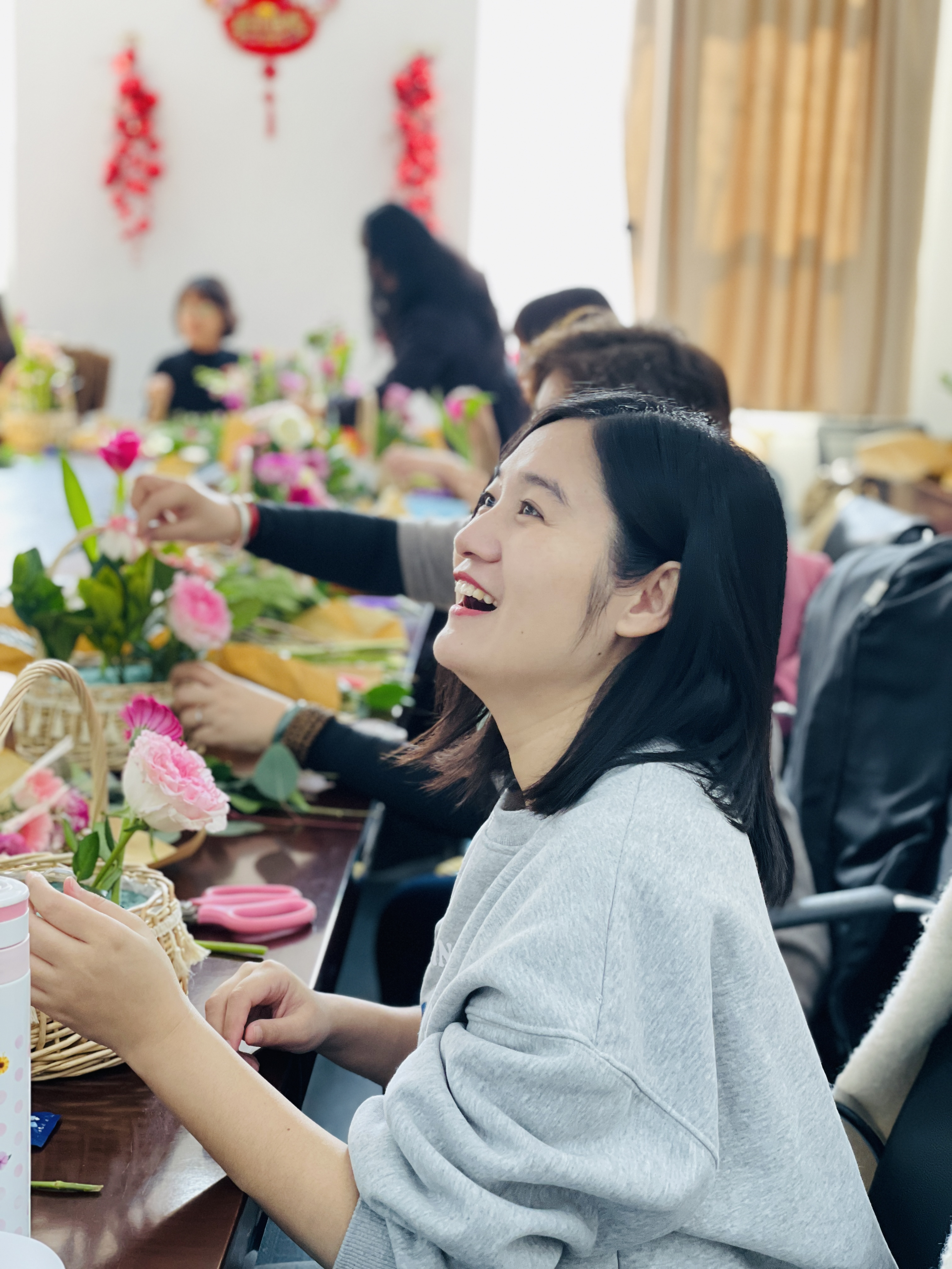 李宏伟代表公司党委对女教职工表示了节日的问候。吕军对公司的关心和支持表示感谢。艺术指导老师介绍了插花的历史、分类和基本操作顺序后,在场人员开始纷纷打造自己心中的小花园。插花过程中大家学习交流着花草的习性、生长周期等知识,对比着不同人插花的结果,春天伴随着花枝的摇动起落悄然降临。