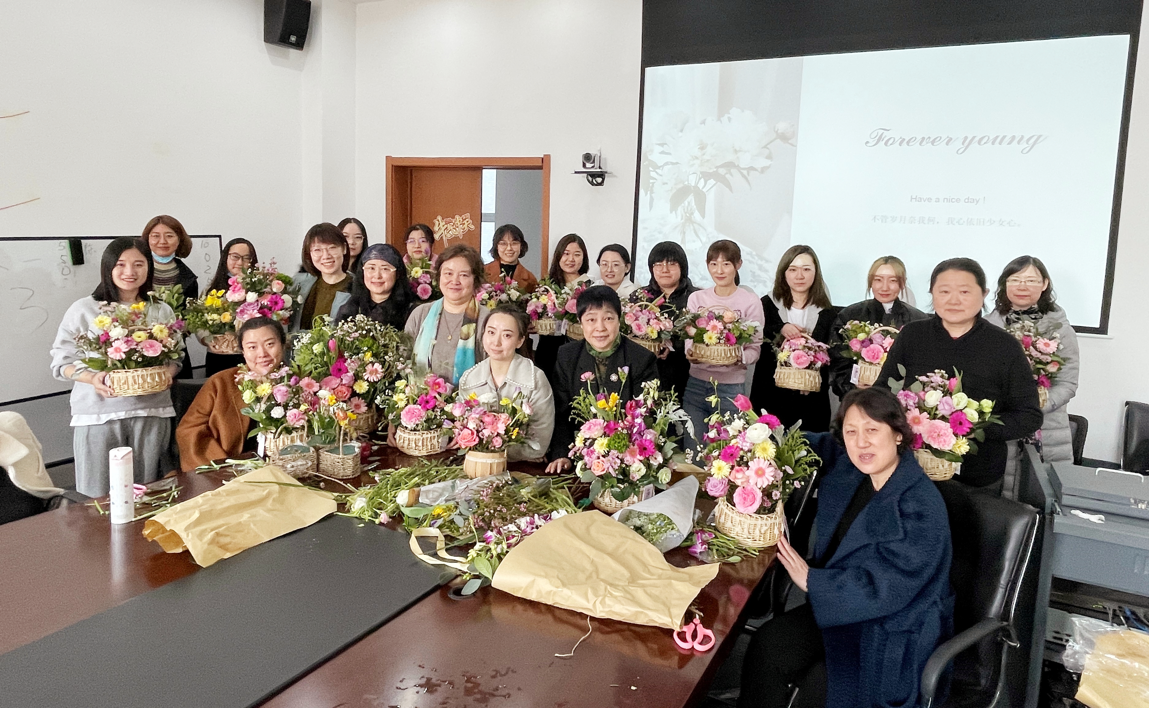为庆祝第111个“三八”国际妇女节,英国365集团妇委会和工会于3月8日在匡亚明274会议室联合举办了“早春三月觅芳华”插花活动。考古公司党委书记李宏伟、妇委会主任吕军和公司20名女教职工参加了活动。