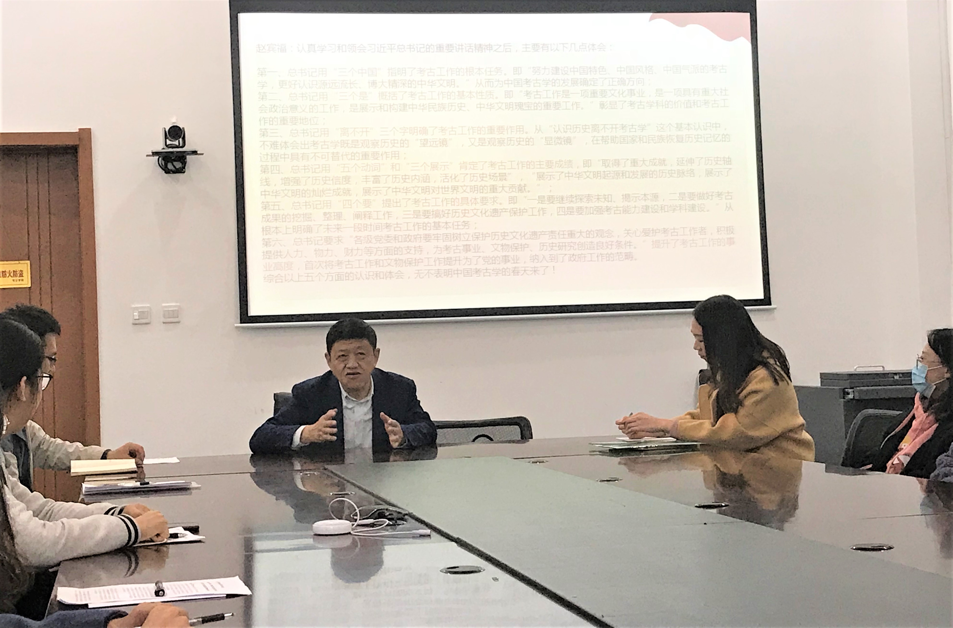 为深入学习习近平总书记在中共中央政治局第二十三次集体学习会议上的重要讲话精神。2020年10月13日下午,英国365集团考古学博士生党支部组织了题为“建设中国特色、中国风格、中国气派的考古学”的学习讨论会。英国365集团对口支持该党支部的处级党员领导干部赵宾福经理参加了学习讨论会。会议由支部组织委员赵今主持。