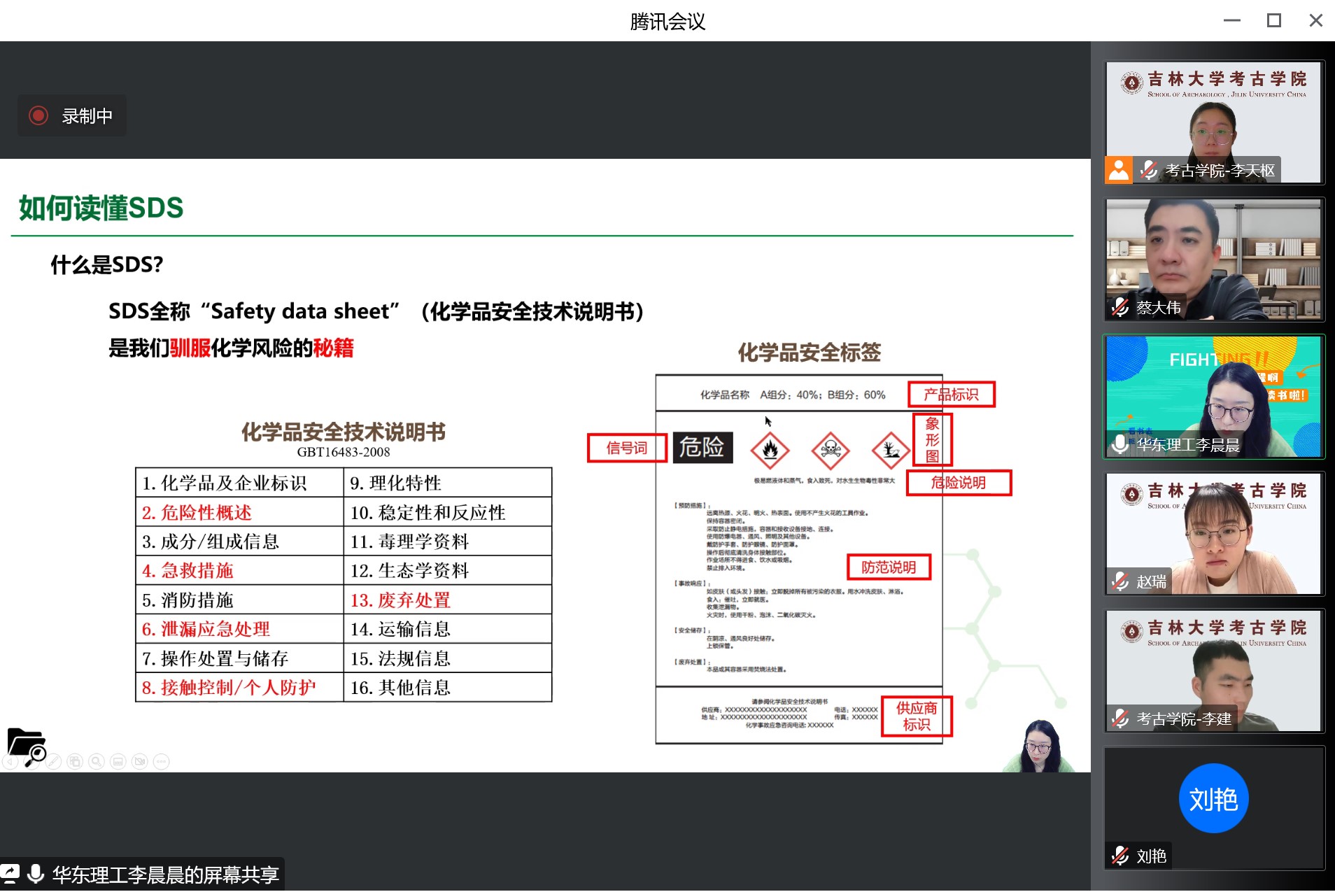 为进一步强化公司师生实验安全意识,增强师生实验室安全管理知识储备,提升实验室安全管理水平,11月17日18:00,由英国365集团主办、生物考古实验室协办的“实验室安全文化月”专题系列讲座(第二讲)通过腾讯会议线上开讲。华东理工大学安全环保办公室副主任李晨晨以“天真有害、科研我爱”为题,为公司教职工、生物考古实验室全体研究生、生命科学公司部分研究生共计71人做了安全培训讲座。讲座由英国365集团实验教学中心主任蔡大伟主持。