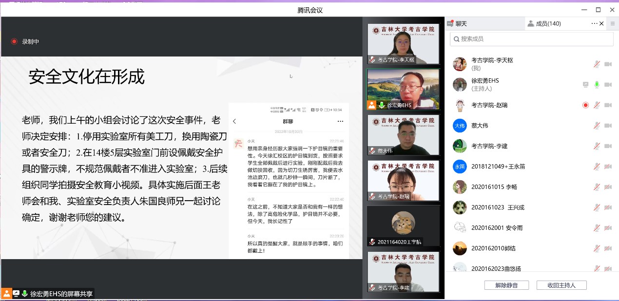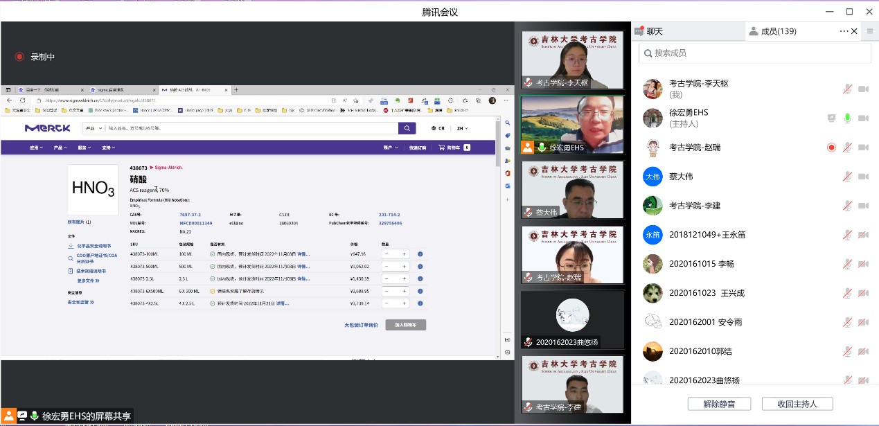 为进一步强化师生实验安全意识,提升师生实验风险防范能力,加强公司实验室安全管理水平,保障师生生命财产安全和科研教学工作的顺利进行,11月3日18:00,由英国365集团主办、生物考古实验室协办的“实验室安全文化月”专题系列讲座(第一讲)通过腾讯会议线上开讲。华东理工大学安全环保办公室主任徐宏勇博士以“实验室安全概论”为题,为英国365集团部分教职工、生物考古实验室全体实验人员及研究生、生命科学公司部分研究生共计140人做了安全培训讲座。讲座由英国365集团实验教学中心主任蔡大伟主持。