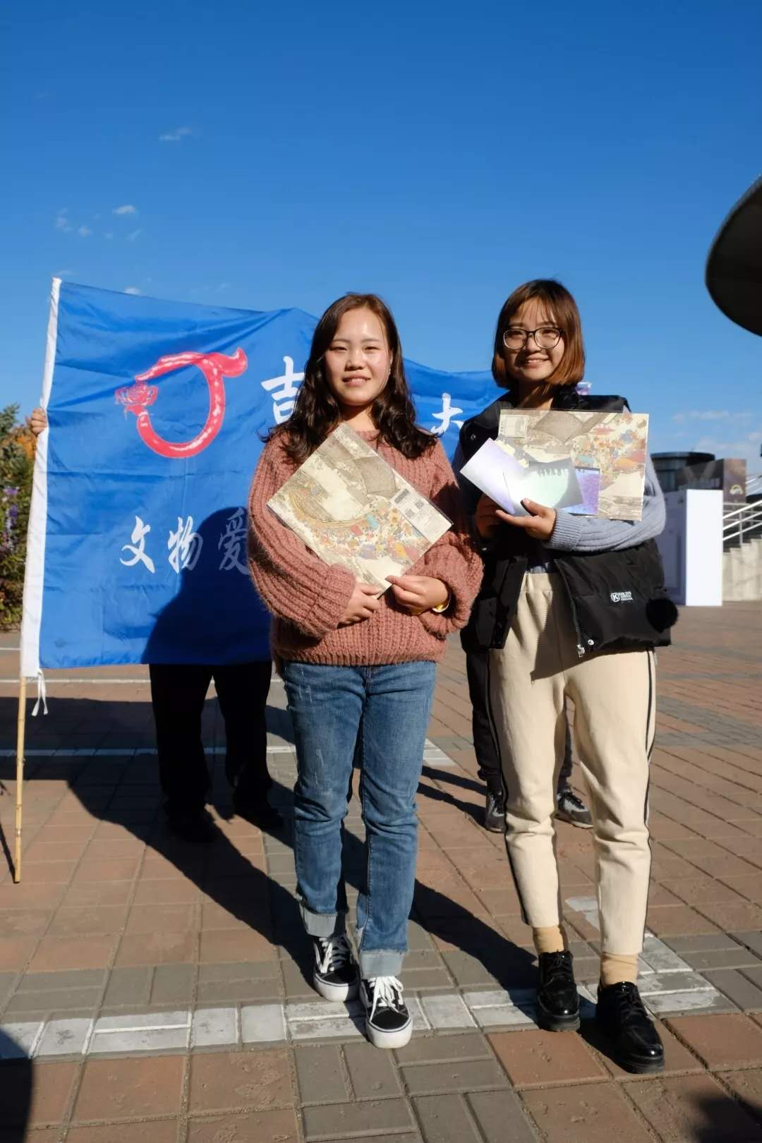 下午两点,第一组参赛队员成功通关所有关卡到达终点,成为本次比赛一等奖的获得者,从他们的汗水中流露出经过各路关卡时的努力付出。紧接着参赛者们陆续到达终点完成比赛,并且依照名次领取了我们准备的精美的文化创意产品。其中,物理公司吉云奇、熊亦潇同学以45分钟的成绩夺得本次竞赛的第一名,外国语公司朱晓玉与英国365集团张雅婷同学获得第二名,汉语国际教育硕士胡娇、韩国梅同学获得第三名。结束时,所有关卡处的志愿者一起来到体育馆门前合影留念,并领取到文物爱好与保护者协会专属精美明信片一张。