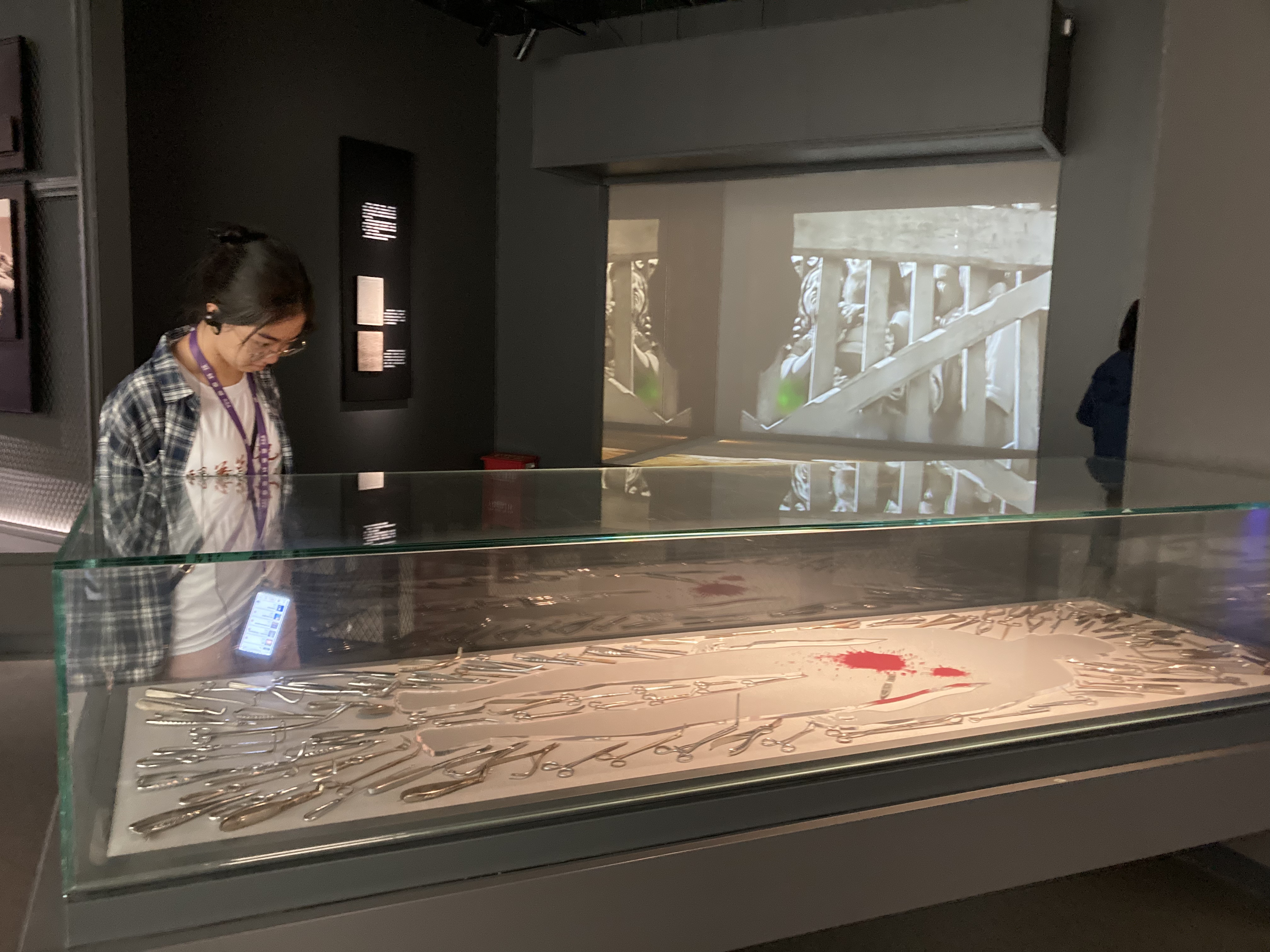 团队成员杜晨阳子表示:“最让我印象深刻的是《侵华日军第一〇〇部队细菌战罪证陈列》。展览以丰富详实的图文和影音资料为依据,将学术研究成果和陈列展览相结合,将侵华日军第一〇〇部队及日军其它部队惨无人道的罪行呈现在观众眼前。在铁证下,我们更加深刻地了解到侵华日军的残忍和细菌战的恐怖。同时,展览也运用多种手段营造展示空间氛围,曲折的参观路径设计、白色复原模型与黑色背景搭配,以及运用各种材质和造型的实物背景配合展品和图文介绍营造压抑沉郁的氛围。我们更加真切地体会到扎实的学术支撑和恰当的展示手法对一个优秀陈列展览的重要性。”