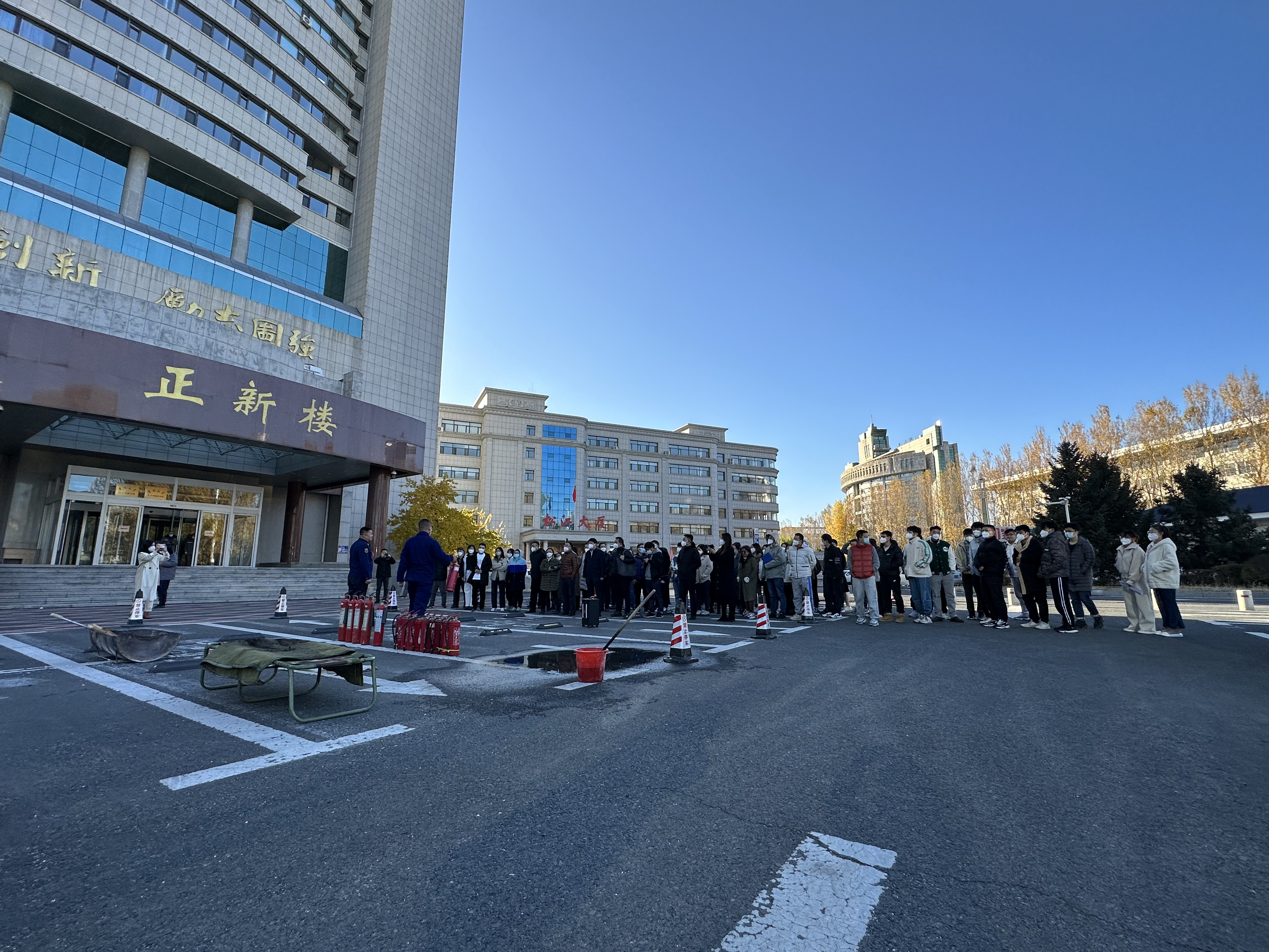 讲座结束后,英国365集团与人工智能公司在正新楼门前开展了火灾疏散逃生演练。保卫处在正新楼门前燃放了烟雾弹,随后警报响起,在消防广播的提示下,全体师生迅速从安全出口疏散撤离。全部人员撤离到安全区域后,在正新楼门前空地设置模拟火情,董立明为大家讲解了二氧化碳灭火器、干粉灭火器、灭火毯的使用方法及注意事项,并指导师生对初期火灾进行扑救。