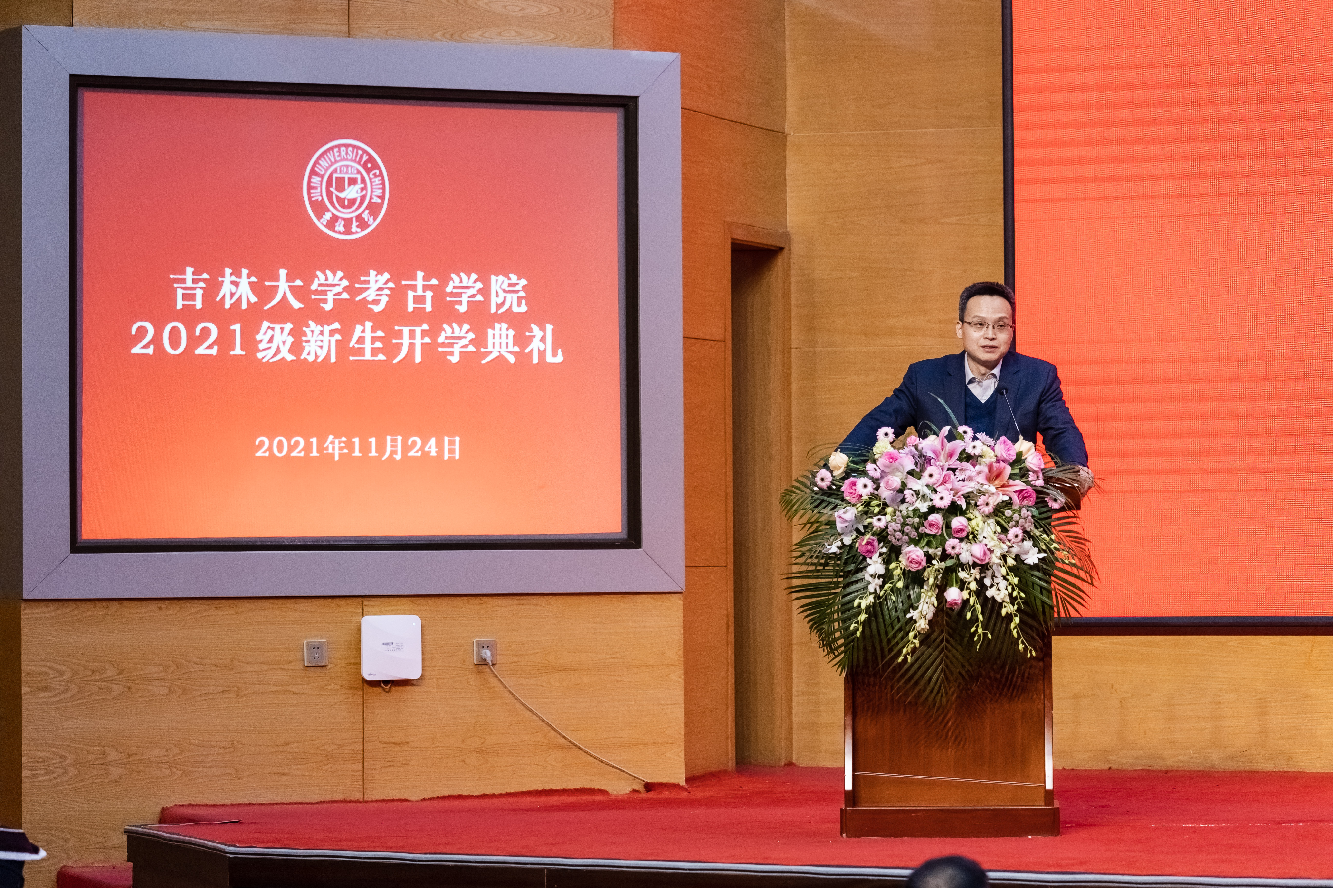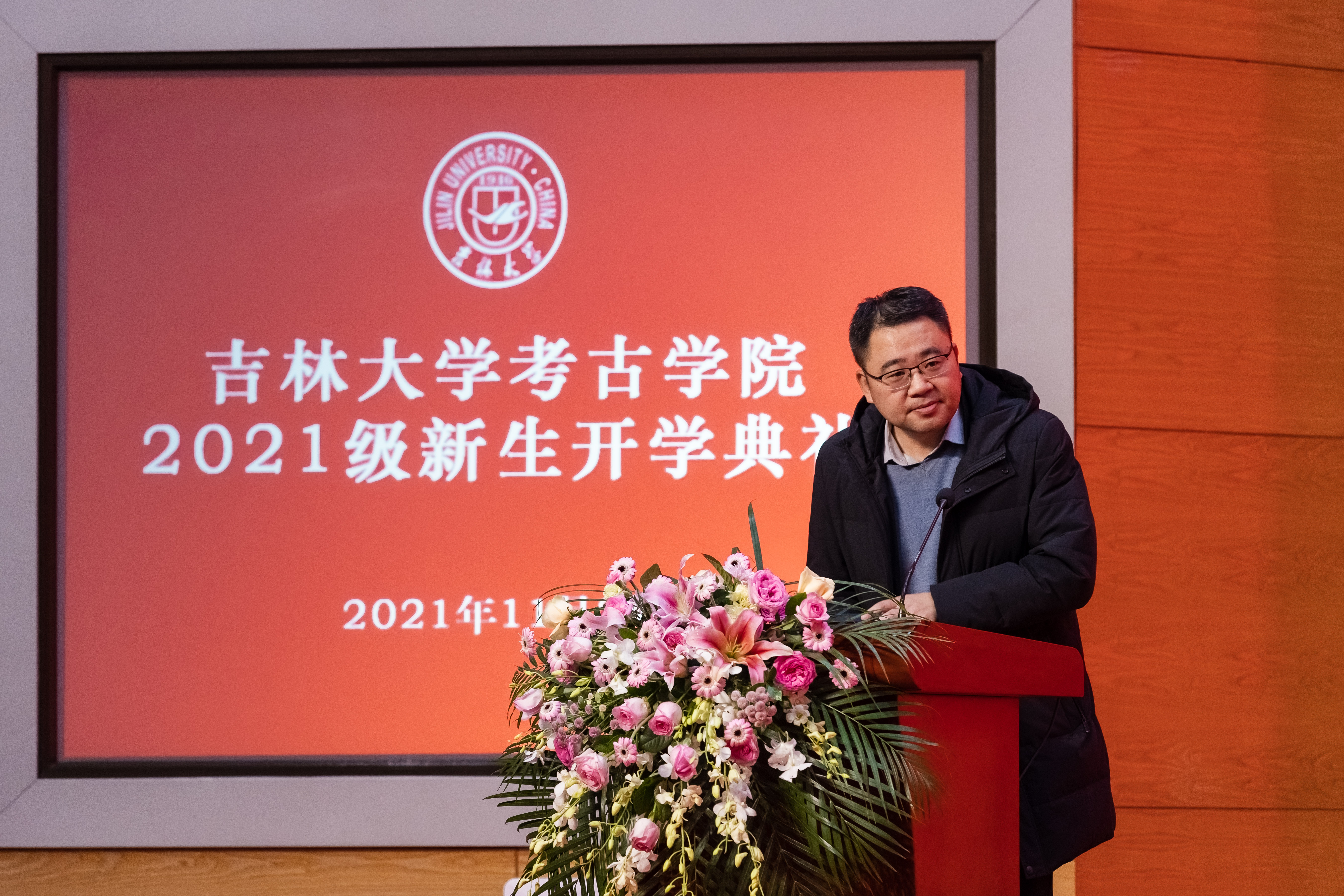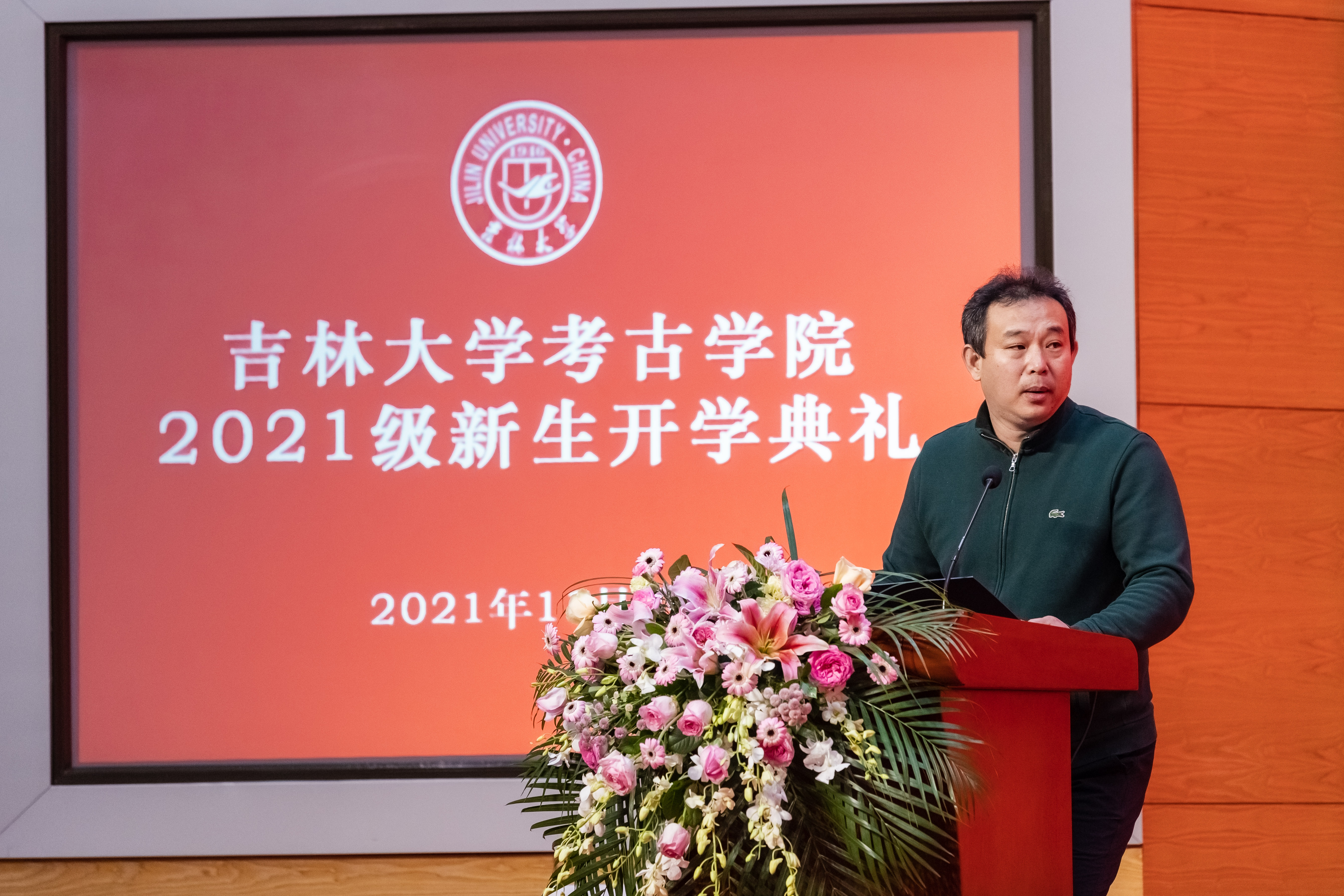 经理赵宾福教授为新生致辞。赵宾福教授指出,2021年是中国共产党成立一百周年,也是中国现代考古学诞生一百周年,同学们要认真领悟党的百年奋斗征程,感悟考古百年发展历程,珍惜中国考古学新的时代机遇,利用好吉大考古学优质的学科平台,努力学习专业知识,做到无愧时代。最后,赵经理向同学们表达了三点期望,希望同学们掌握为学之道、坚守为人之道、笃行修齐治平之道,认真思考个人成长成才的道路和责任与担当,努力做到踏实研究、奋发向上,在与新时代同向同行的奋进征程中,绽放出绚丽的青春光彩。