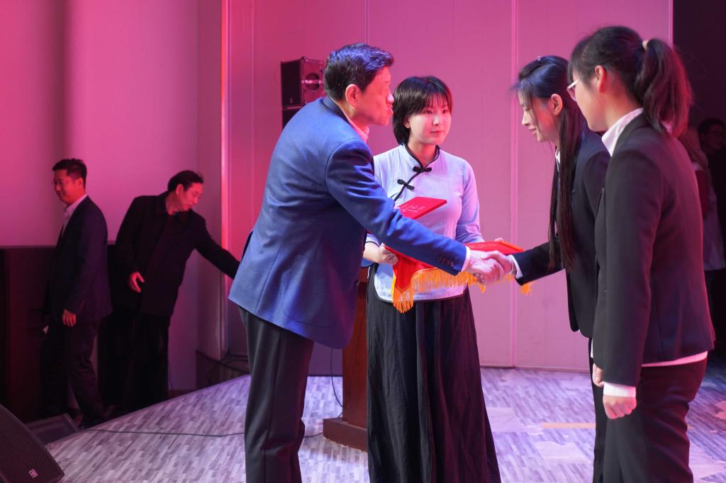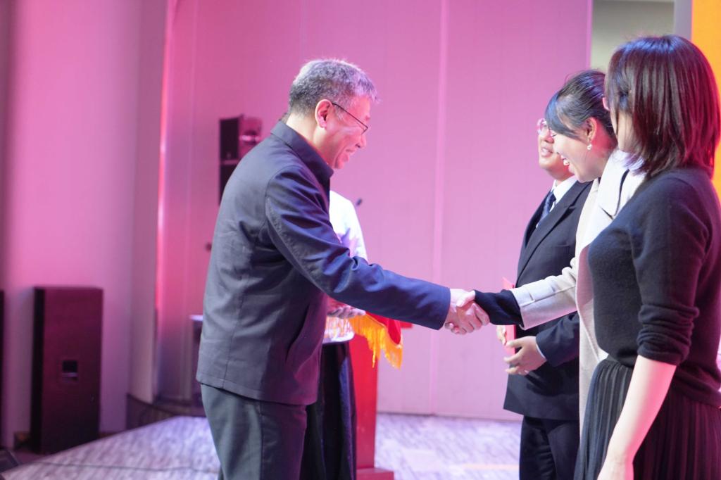 公司副经理段天璟教授宣布公司2019年新生奖学金获奖名单,赵宾福经理为获奖同学颁发奖状。