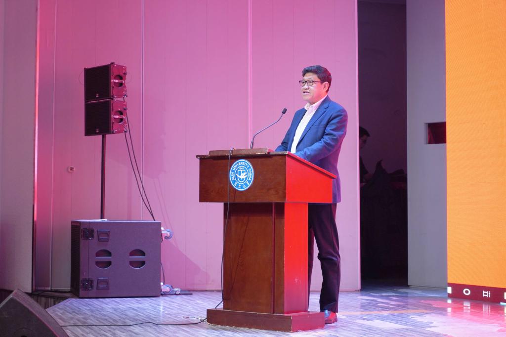 公司经理赵宾福教授致辞,赵宾福教授首先代表公司对2019级的新生表示热烈的欢迎,并借用著名社会学家费孝通先生“各美其美,美人之美,美美与共,天下大同” 的话语,引申阐释,用以指引同学们在吉大考古塑造自己的美、践行考古工作者的初心与使命。同时,他希望同学们善于去理解和发现他人的美,希望同学们不要成为精致的利己主义者,并鼓励大家诚实做人、踏实做事,收获更好的自己。