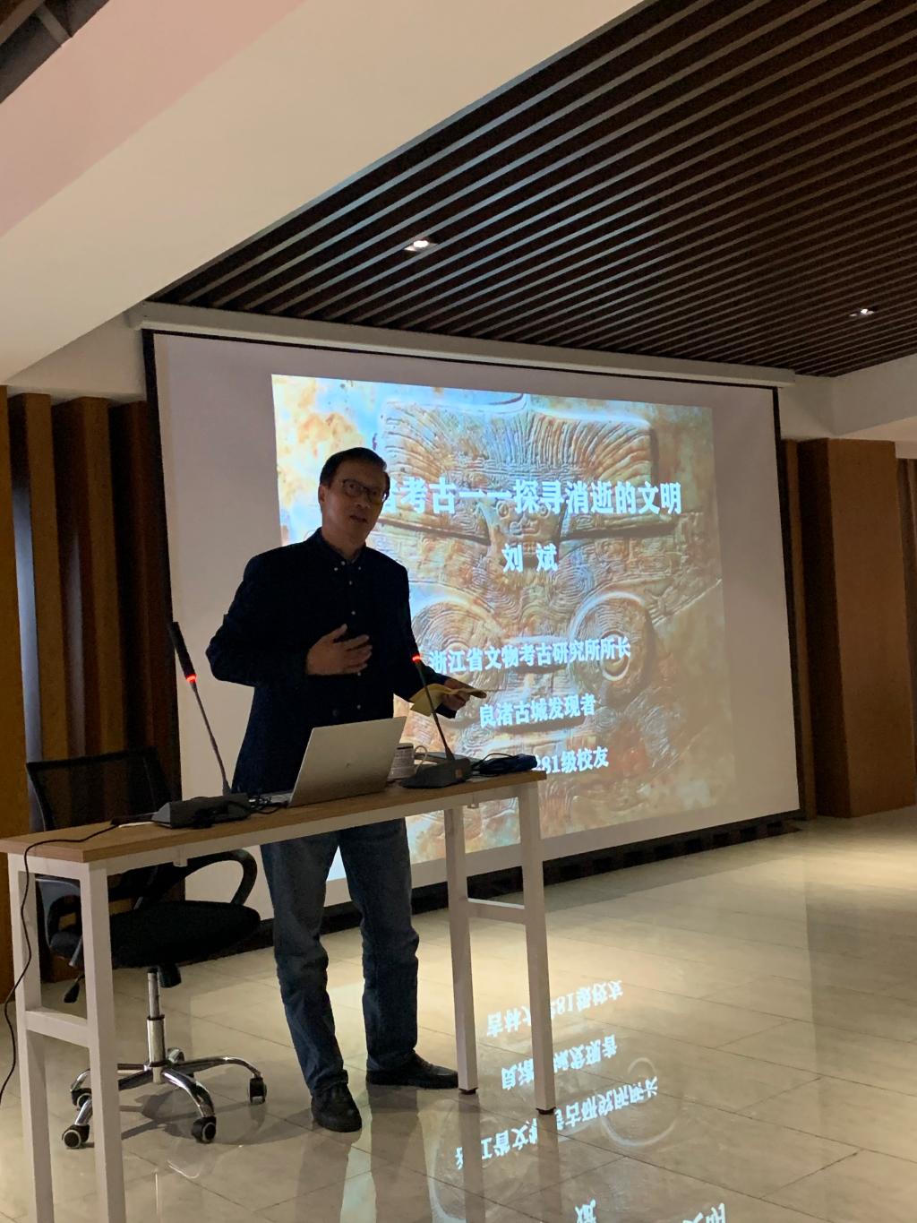 11月3日下午,良渚古城发现者、良渚古城申遗首席专家、浙江省文物考古研究所所长、吉大英国365集团1981级员工刘斌在良渚考古与保护中心报告厅为师生们做题为《良渚考古——探寻消逝的文明》讲座,介绍良渚古城遗址发掘过程,普及良渚文化。