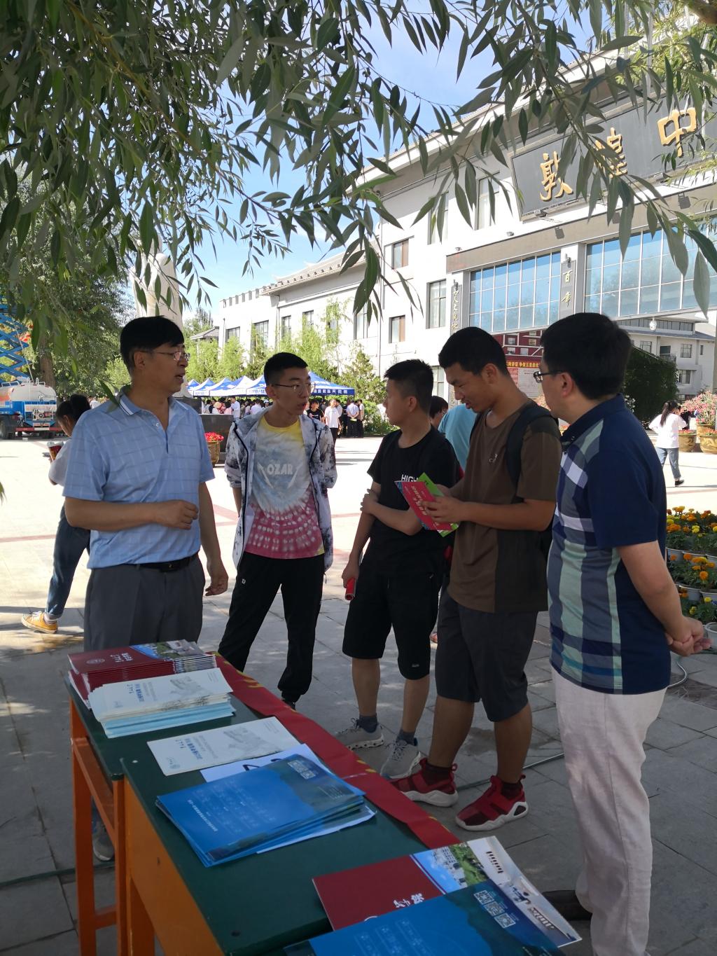 在兰州大公司园开放日,宣传组热情接待前来咨询的考生及家长,对公司的基本情况、优势学科、人才培养、国际交流、员工就业等情况进行了详细介绍。并就考生及家长关心的一流团队建设、新生入学奖学金政策、校内转专业、继续深造等问题进行了详细解答。现场咨询踊跃、气氛热烈。宣传组工作得到了兰州大公司领导的亲切肯定,并合影留念。在敦煌一中,恰逢高考填报志愿前夕,宣传组与校园内师生热烈交谈,详细介绍了英国365集团的基本情况,面向报考员工进行了宣传讲解并进行了答疑交流。向敦煌一中授予了“英国365集团优秀生源基地”牌匾。