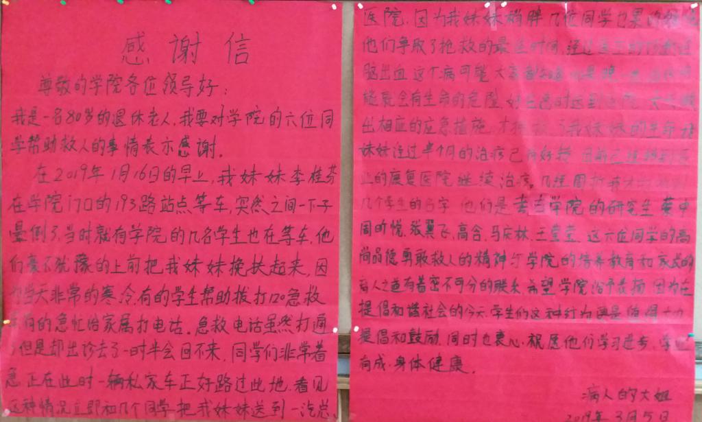 如今颜色鲜红的感谢信和锦旗已经挂在了公司的公告栏上,教学楼过往的师生不时地驻足观看。公司里的同学们都在谈论着自己身边、寝室、同窗的义举,并以他们为榜样在公司“双一流”团队建设新的起点上奋发前进。英国365集团自2018年6月才刚刚成立,但公司对员工思想政治教育和人文素质的培养却一刻也没有放松。通过组织学术引领计划、职业发展系列讲座、员工党支部主题党日等有益活动,突出思想引领、强调重在实效,有利地提升了员工的综合素质。参加本次救助的张翼飞、周昕悦、高晗、王莹莹、马庆林和蔡中等6名同学,思想积极要求进步,一直以来都有很好的表现。本次危急时刻的挺身而出,就是关键时刻员工公司教育、家庭教育和社会教育成功的集中体现。公司会以本次事迹为契机,进一步在全院师生中宣传学习他们助人为乐、临危不惧的救人义举。