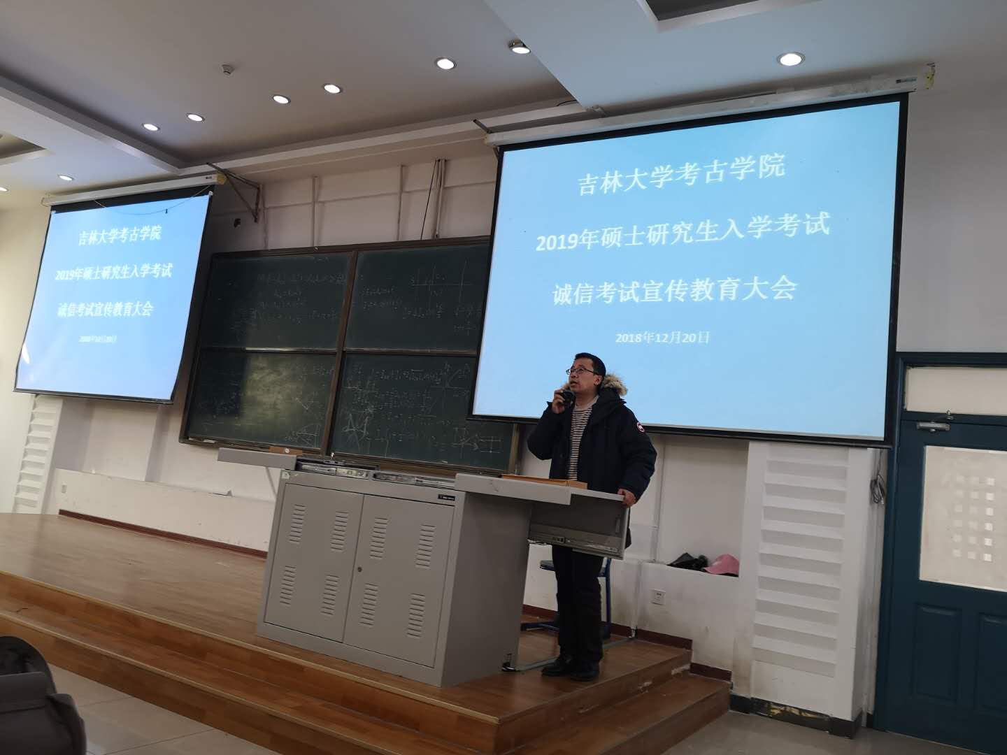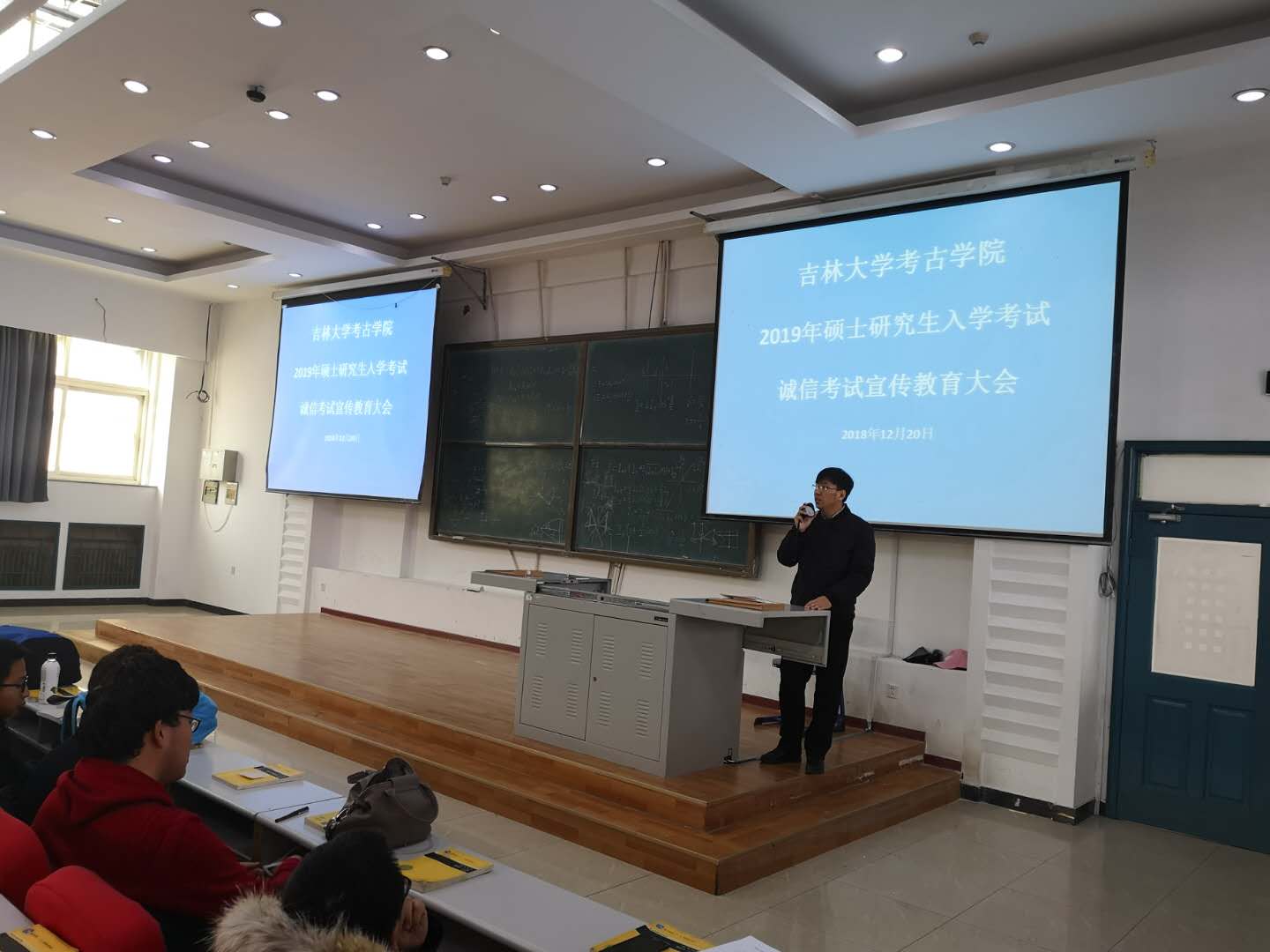 2018年12月20日中午,英国365集团于中心校区经信教学楼F区第九阶梯教室召开2019年诚信考试宣传教育大会。考古公司党委副书记兼副经理侯建峰出席,研究生工作办公室主任魏来、员工工作办公室主任杨晨及英国365集团全体本科生、研究生参加此次大会。