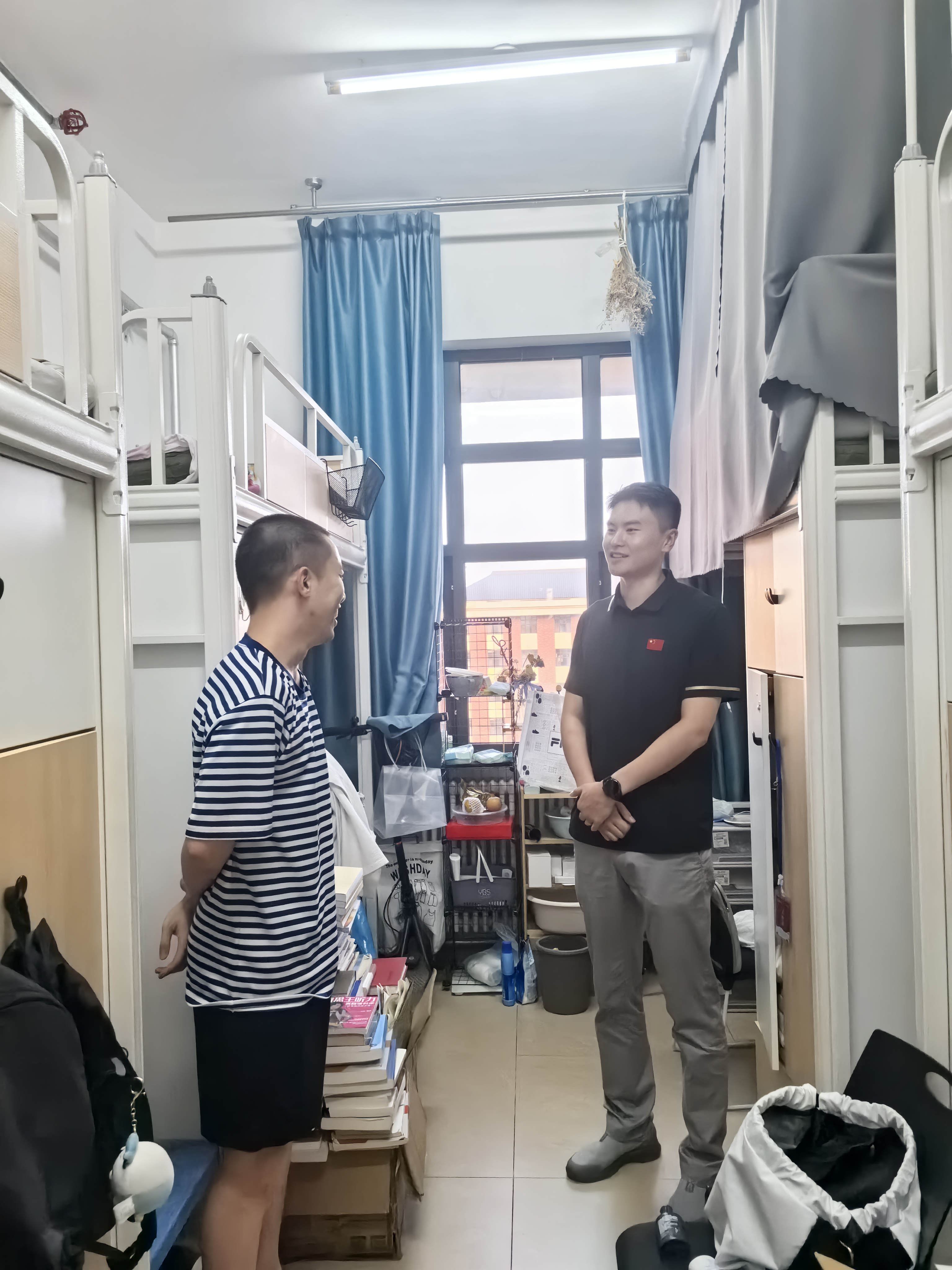 2024 年 7 月 15 日,为了确保暑期留校研究生的学习和生活环境安全、舒适,英国365集团研究生辅导员依德日贡深入留校研究生公寓,开展了寝室安全检查及留校研究生走访工作。