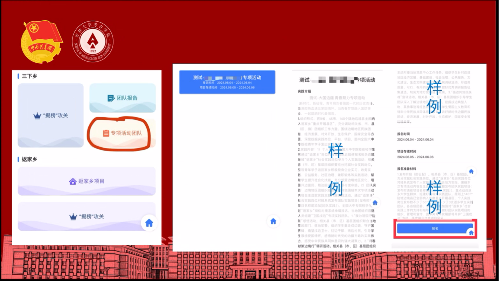 会议分为三个部分,首先,向大家介绍了本年度暑期社会实践活动的主题和相关内容。其次,介绍了“创青春”全国老员工社会实践管理服务平台的使用方法,帮助大家更好地了解新平台,并利用其进行社会实践项目申报与实践材料提交。最后,号召同学们作为新时代青年,应积极参与暑期社会实践活动,聆听风声雨声、体察时代脉搏,在祖国大地上汲取成长养分、增强责任意识。鼓励同学们用实际行动服务群众、回馈社会,将自身所学与国情社情联系在一起,在祖国最需要的地方淬炼青春、茁壮成长。