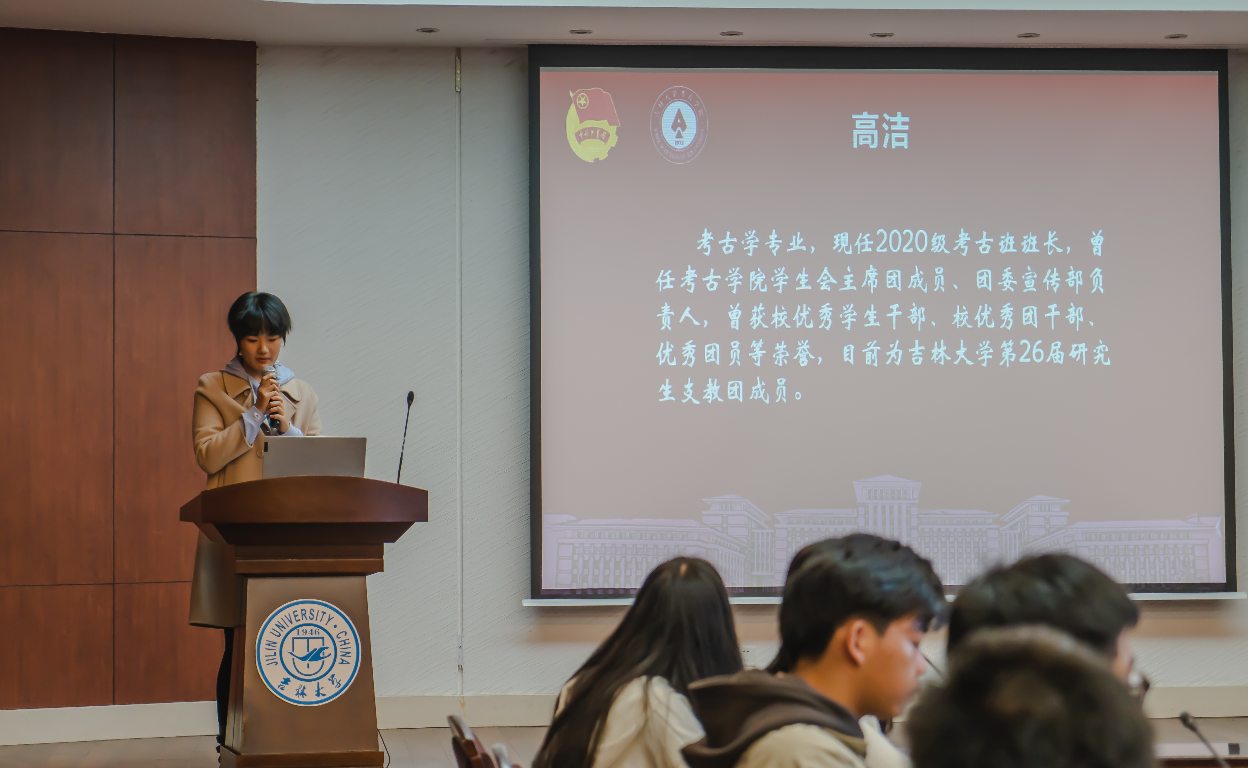 2020级考古班高洁回顾自己两年的团员工涯,从最初竞选的迷茫,到团学指引其方向,再到团学赋予其力量,勉励同学们脚踏实地,认真履行工作职责,全心全意为同学服务,不忘初心,共获梦想。同时向同学们提出建议,一定要用专业学习和员工工作“两条腿走路”。