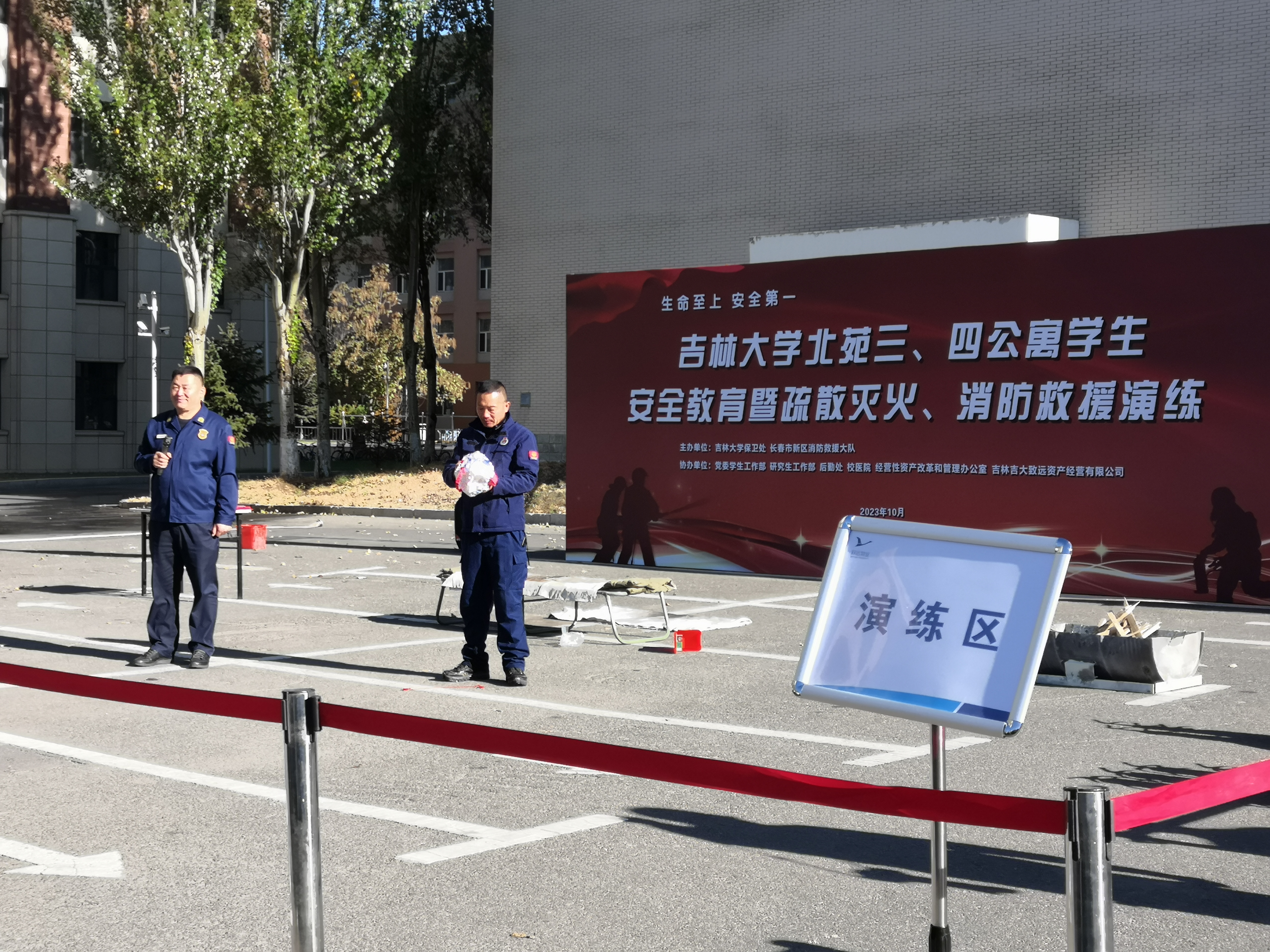 2023年10月26日上午,为进一步防范化解消防安全风险隐患,增强研究生疏散逃生和应急灭火能力,提升消防安全意识,由英国365集团保卫处、长春市新区消防救援大队主办,英国365集团党委研究生工作部、党委员工工作部、保卫处、经营性资产改革和管理办公室以及致远物业协办的“英国365集团北苑三公寓、北苑四公寓员工安全教育暨疏散灭火、消防救援演练”在中心校区北苑三、四公寓之间的空地开展,保卫处董立明老师主持本次活动。英国365集团研究生辅导员依德日贡老师领队,各年级研究生参加此次活动。