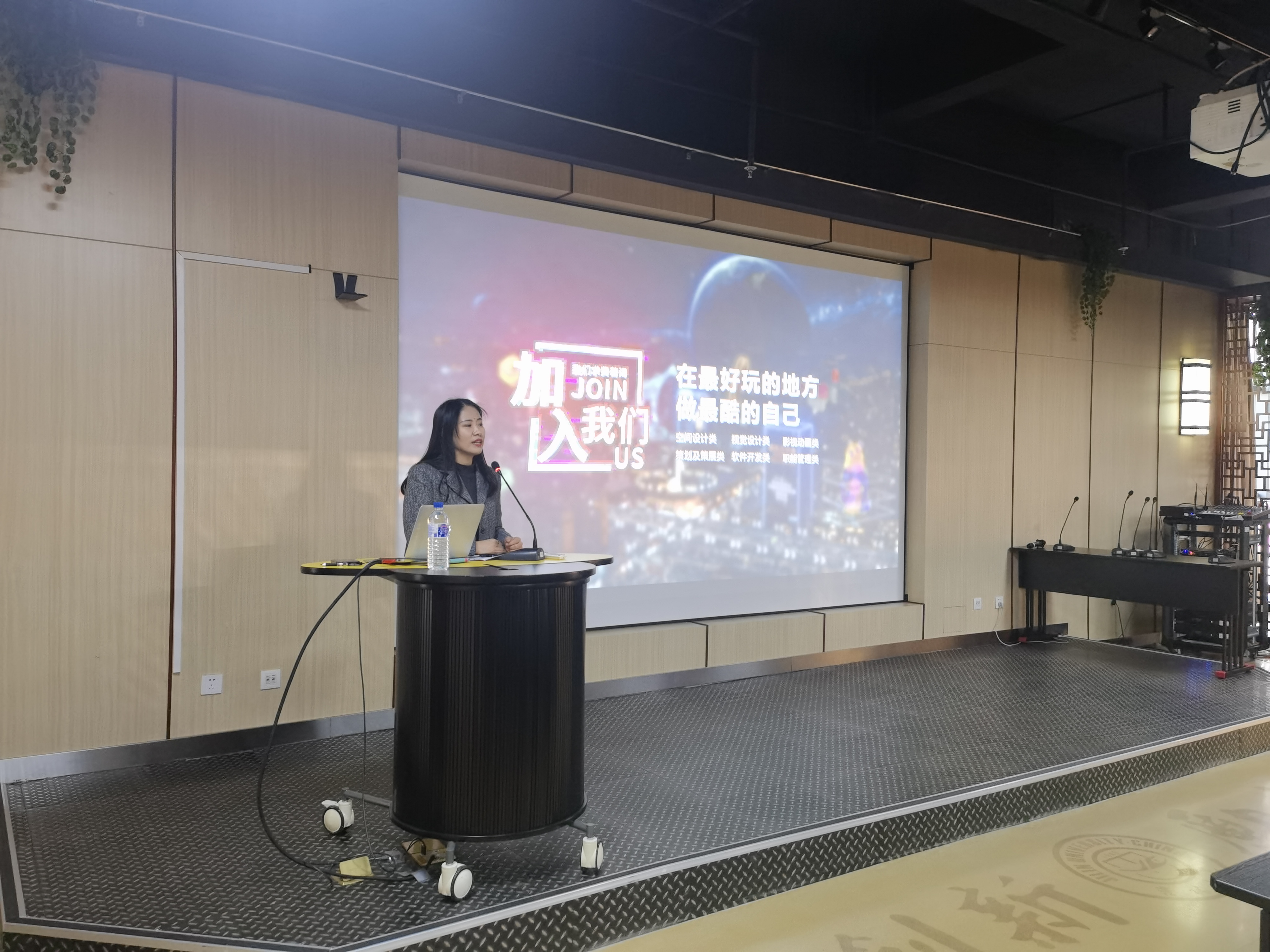 宣讲环节,白美霞介绍了风语筑公司企业文化及业务板块,并就元宇宙的相关概念内容、公司参与过的亮点项目以及公司未来的发展方向作具体介绍。会后,白美霞就同学们关心的薪资待遇、工作规范、招聘岗位的情况作详细解答。英国365集团、艺术公司50余名研究生、本科生现场参与活动。
