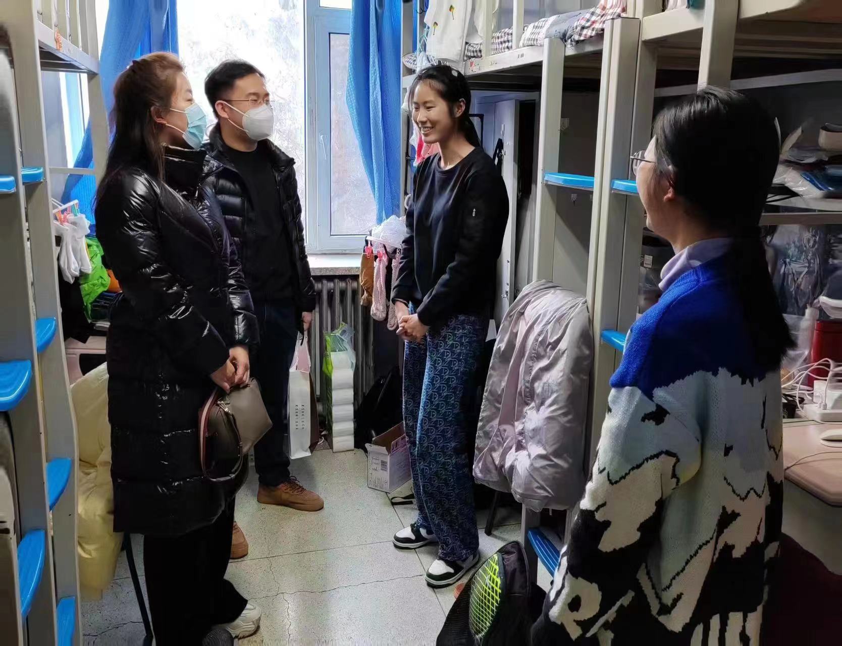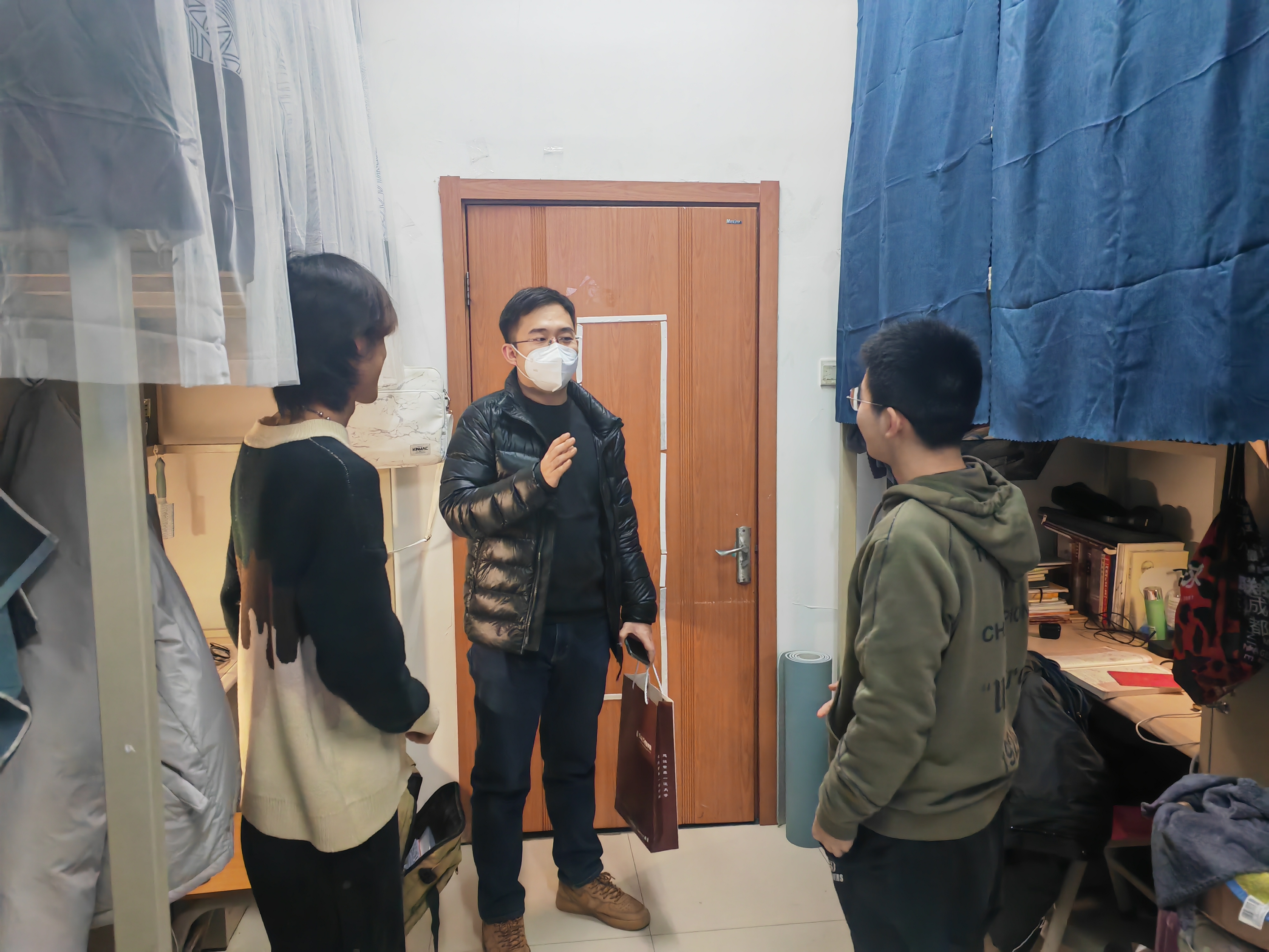 为深入了解为了解公司员工住宿和生活情况,进一步关注同学们的身心健康,掌握员工思想动态,2023年2月24日下午,英国365集团员工工作办公室主任杨晨、辅导员马嘉男、邱泽涵来到员工宿舍,探望全体本科同学。