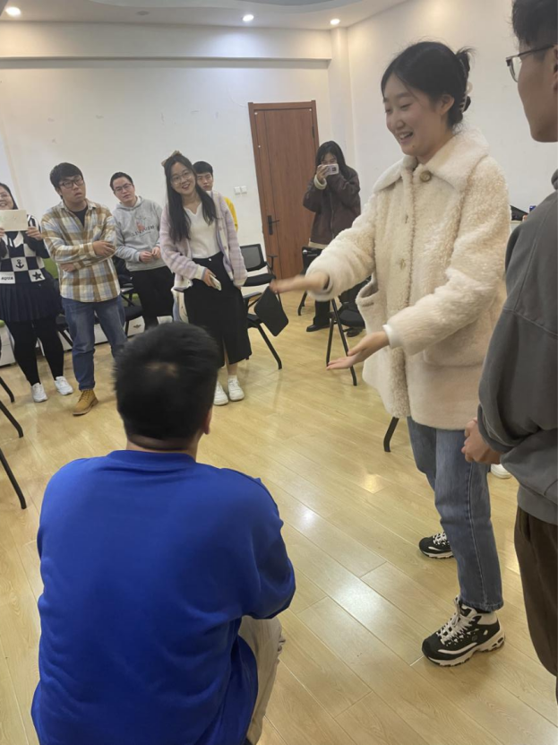 本次活动共分为热身、过渡和升华三个阶段,结合活动不同阶段各自的特点,设置开展侧重点不同的活动环节,从“敢于表达”“不畏孤立、正视合群问题”“善于倾听”“讲话技巧”“感受语言的威力”“夸人技能”等社交技巧入手,男女混合随机分组模式,活动环节循序渐进,让同学们在缓解尴尬的过程中逐渐放松。“国王与天使”环节使同学们先相互了解,加深对彼此的初印象;“心有灵犀”、“悄悄告诉你”环节,使活动现场气氛推向高潮,打破冰期拉进彼此距离,逐渐熟悉起来。“聆听记事本”、“高情商回复术”、“快乐清单”、“私藏社交秘籍”的分享使同学们在游戏的过程中,也获得人际交往的学习;活动最后进行了团体合影,并向游戏中获得优胜的队伍全体成员颁发奖品,并选出全场最佳默契组发放纪念品,本次活动圆满成功。