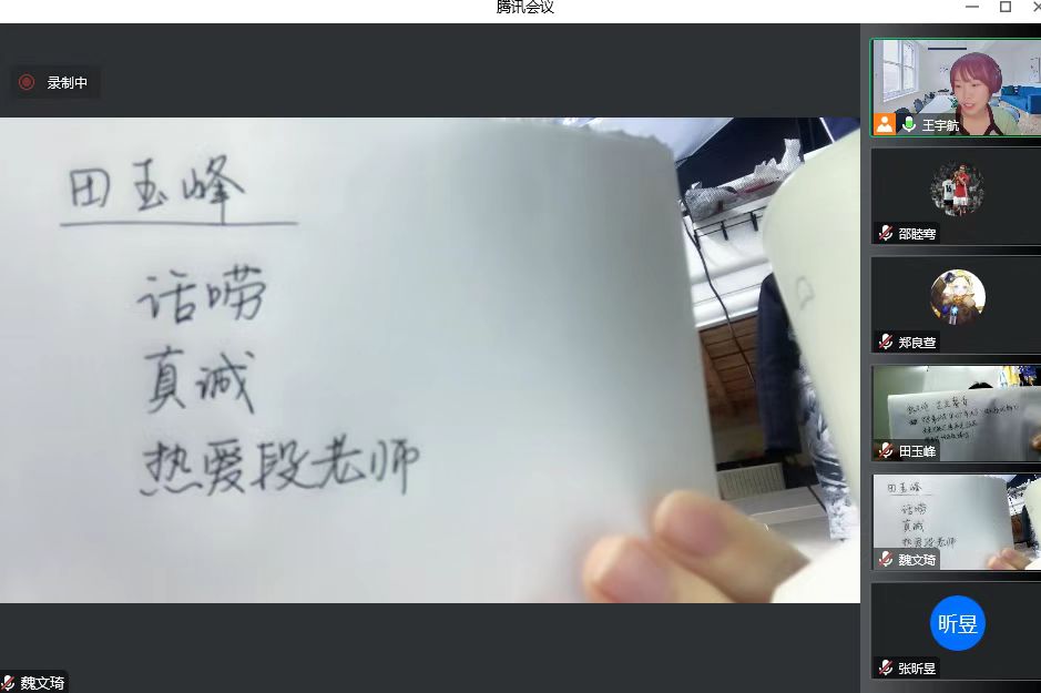 同学们被分为几个小组,对近期线上学习和生活中遇到的烦躁小事进行讨论,组长对组内同学的发言进行记录。茹鹏同学分享了自己因发烧被隔离的经历,同学们都对他表示关怀,其他同学也都各自分享了自己的烦躁小事,气氛渐入佳境。