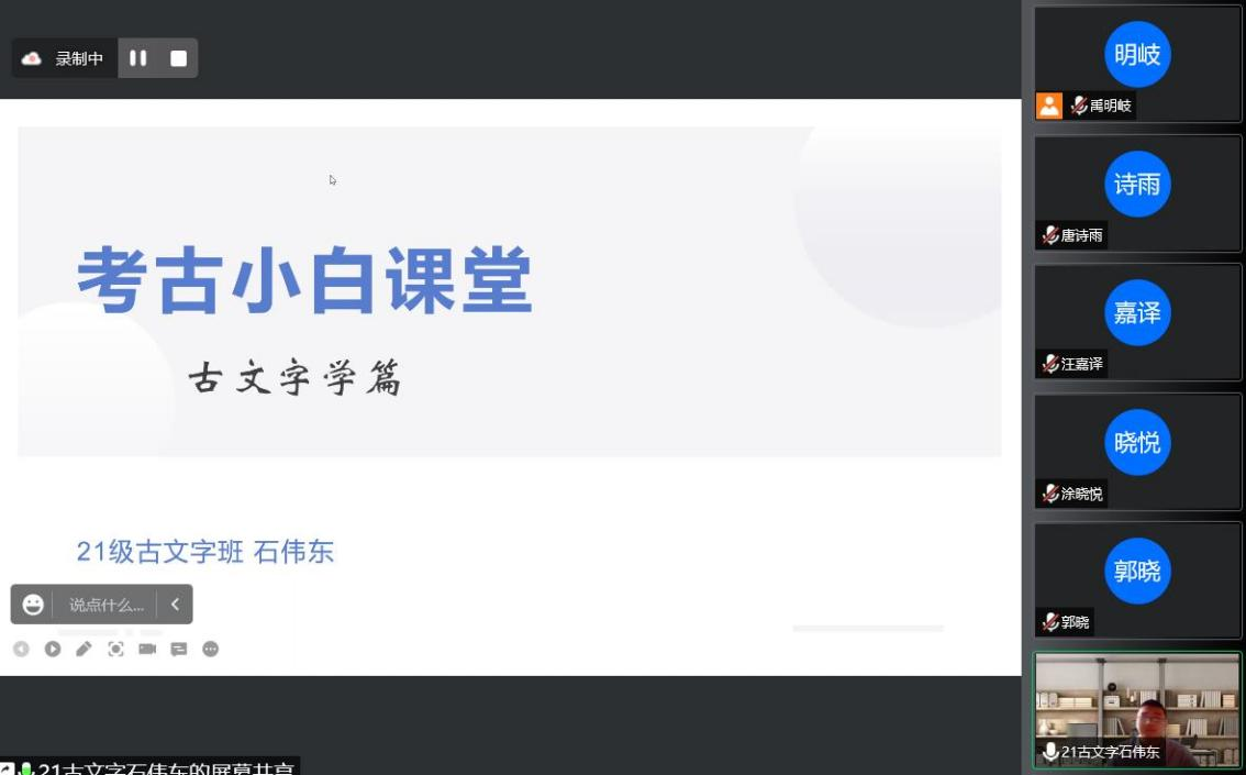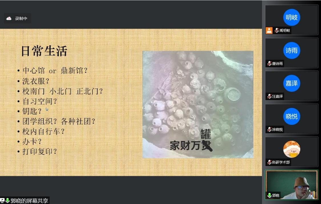 金秋9月,2022级的新生已经经过了一周的线上学习。对于刚刚步入大一的同学们来说,老员工活让人无限向往,但也充满迷茫。为了丰富同学们的课余生活,让同学们更好地了解老员工活,增强学习动力,合理规划学业,英国365集团员工会科研学术部成功举办了考古小白课堂。本次考古小白课堂由英国365集团员工会汪嘉译同学主持,21级考古班唐诗雨同学,21级文博班郭晓同学和21级古文字班石伟东同学进行了分享。