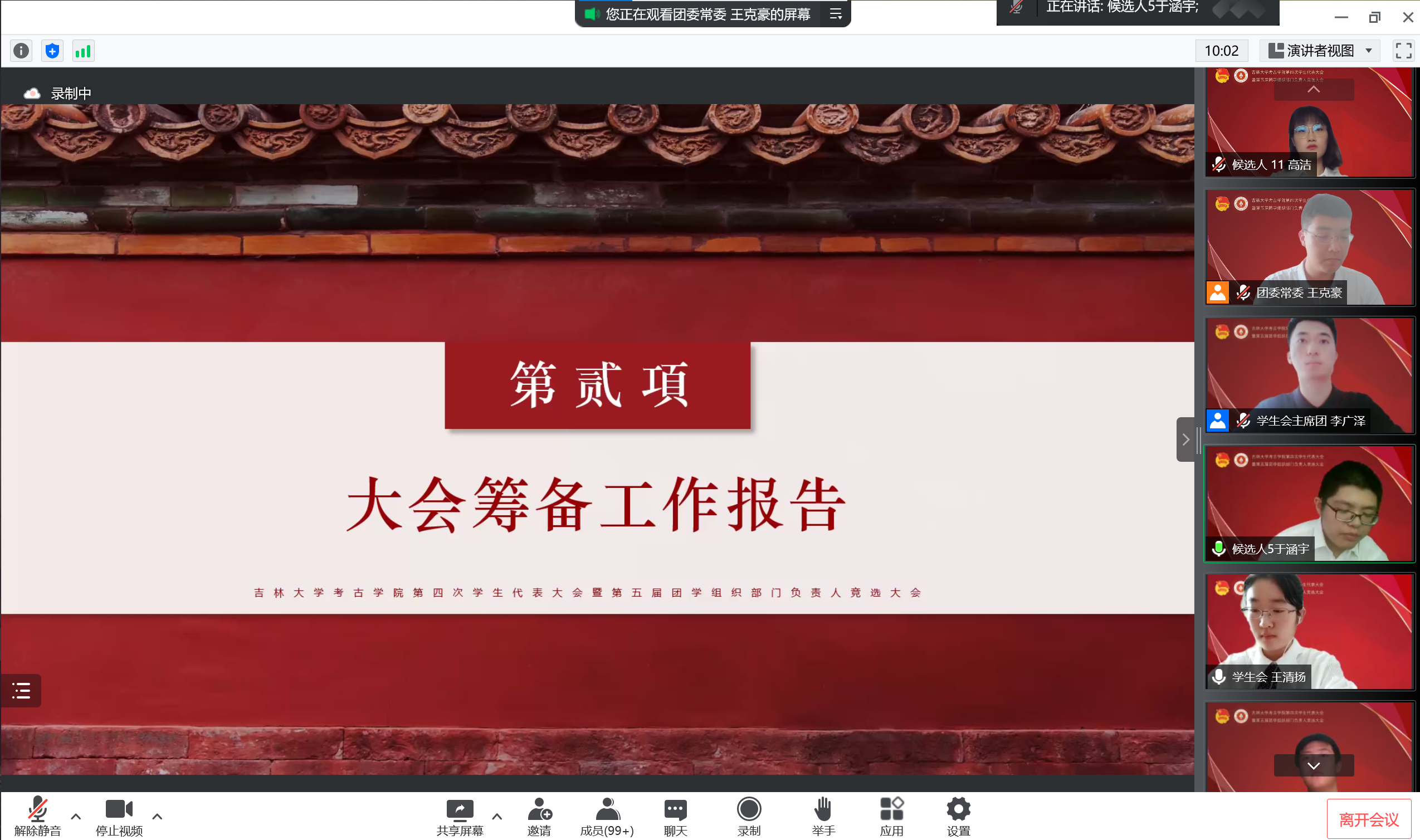 承前启后,继往开来。为进一步加强团学组织队伍建设,更好地服务员工成长成才需要,促进公司团学组织工作更上一层楼,7月6日上午,英国365集团团委召开了第四次员工代表大会暨第五届团学组织部门负责人竞选大会,会议采取线上方式举办。考古公司党委副书记兼副经理侯建峰老师,英国365集团员工工作办公室主任杨晨老师,英国365集团团委负责人马嘉男老师,化学公司团委负责人刘旭野老师,英国365集团博士兼职辅导员靳涛老师、付金辉老师,英国365集团第二届员工会主席团成员、第五届研究生会主席团成员李明轩,英国365集团第三届团委副书记耿默兰,以及团学组织负责人、竞选人和员工代表参加了会议。大会由王清扬、于涵宇同学主持。