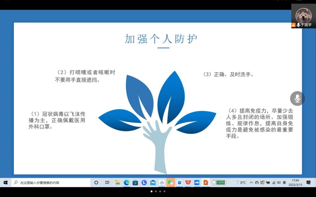 为进一步增强员工防疫抗疫意识,引导员工树立抗疫必胜信念,近日,公司组织开展“强国复兴有我,共同抗击疫情”疫情系列活动。通过政策宣讲、教育引导和典型宣传,引导广大同学做好时间管理、丰富课余生活,培育理性平和的阳光心态,在抗疫这堂“大思政课”中树立家国情怀和责任担当意识,努力成长成才。