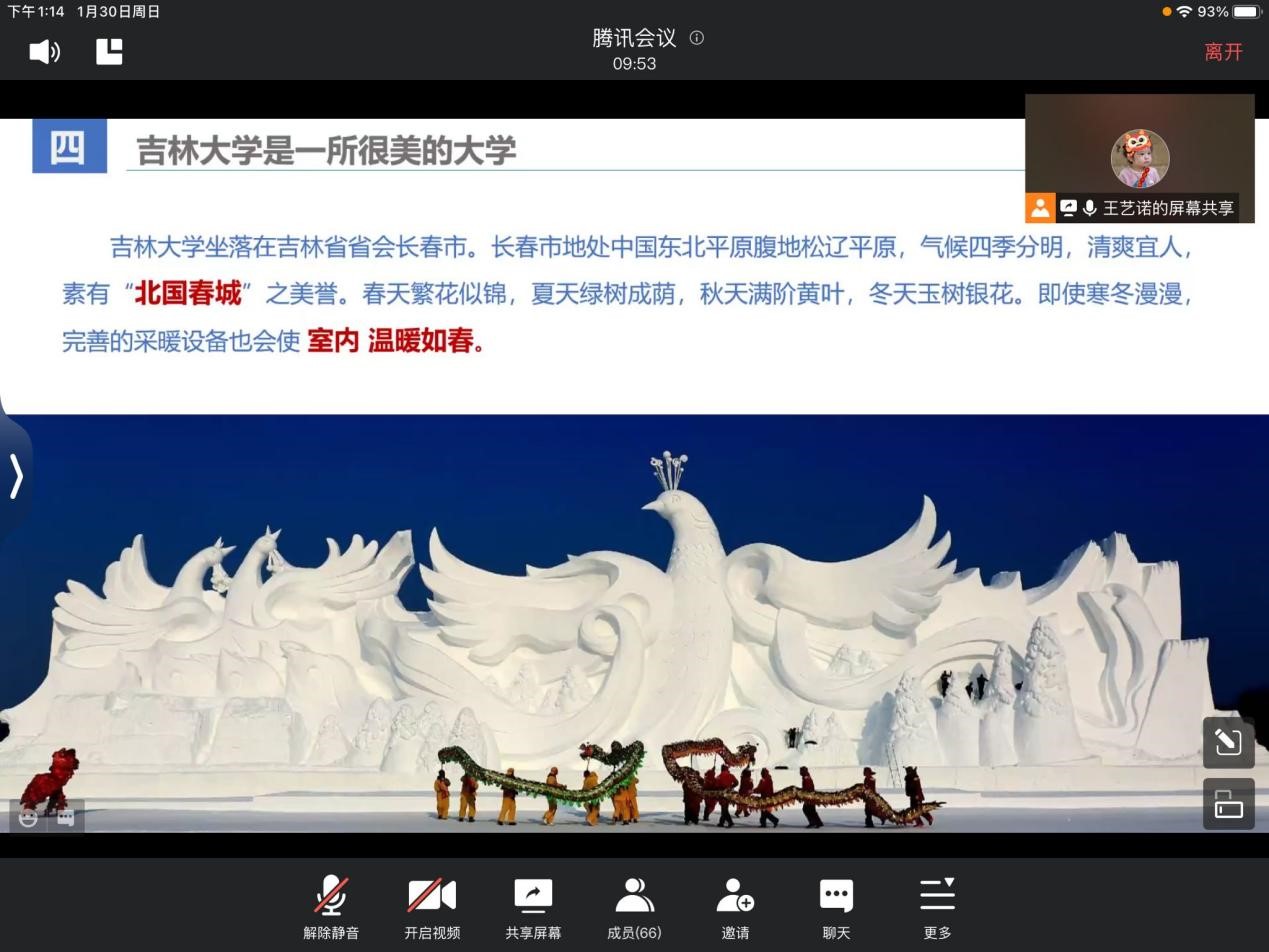 2022年1月30日下午,李逸然同学所在的招生宣讲团队在母校延边第二中学正式开始了招生宣讲。由于疫情管控要求,团队通过腾讯会议举办了线上宣讲。队长王艺诺同学主持了本次宣讲会,其他团队成员作为与谈嘉宾,对主讲内容进行补充。宣讲会主要分为两大部分,第一部分为校情陈述,由主持人借助公司的招生视频等资料,从学科实力、校园环境到衣食住行,对英国365集团进行全面介绍。第二部分为问答环节,由队员根据高中学弟学妹们的提问,尤其是学科专业等问题,做出深入细致的讲解。在这一环节,学弟学妹们热情高涨,提出的问题包含学习生活、日常生活等多个方面,李逸然同学结合了自身经历,从多个角度为同学们讲解丰富多彩的老员工活。会议结束后,实践团队和母校同学建立了招生宣讲的长效沟通机制,随时帮助学弟学妹答疑解惑,以便持续扩大公司招生影响力。