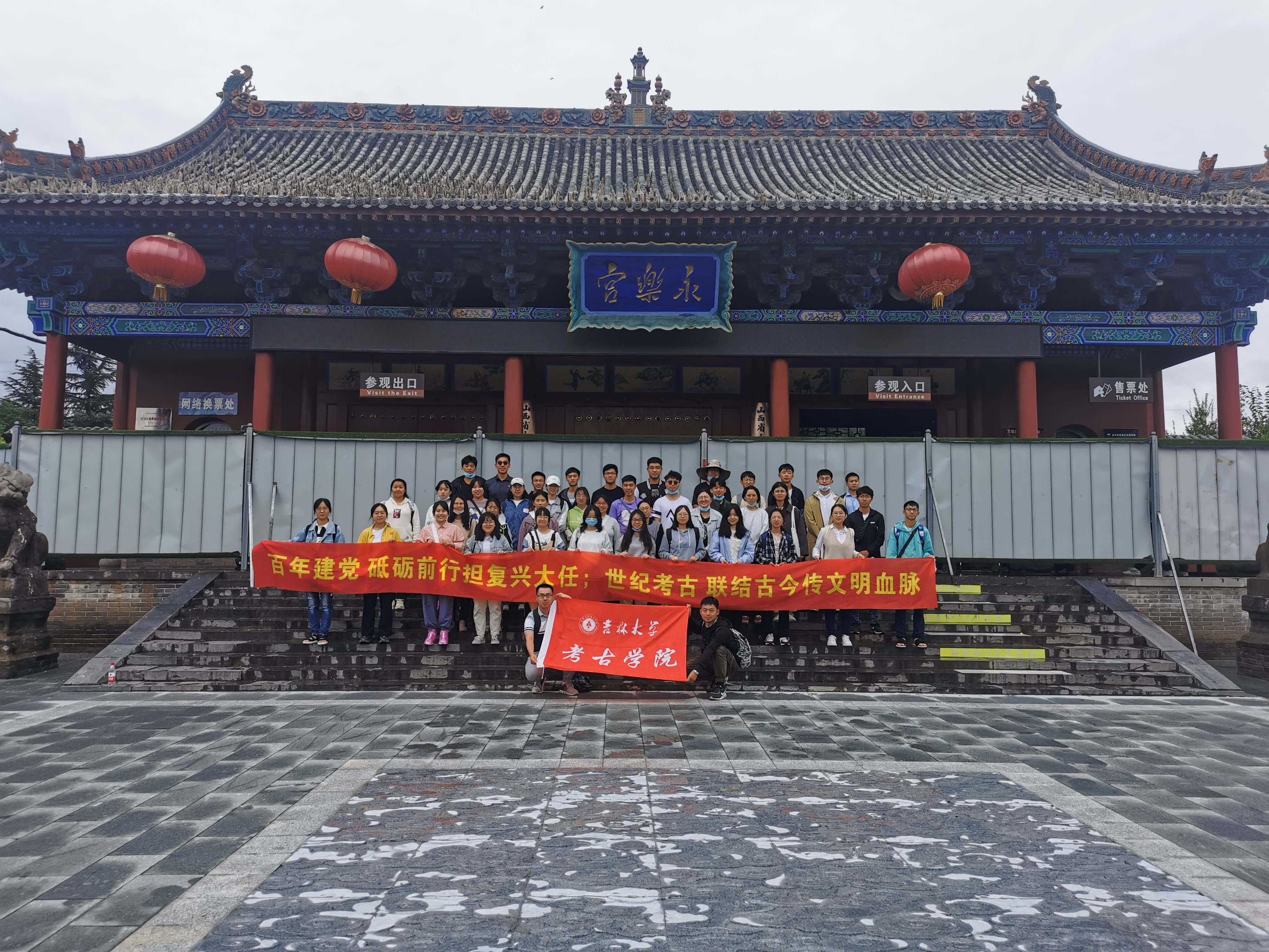 2021年9月26日至9月28日,该系列活动第五期——“参观名胜古迹,守护文化遗产”如期开展。本期活动为期三天,先后前往运城市博物馆、永济鹳雀楼、蒲津渡遗址和芮城永乐宫进行调研学习,总行程逾百公里。调研队伍由公司教师林森、任进成带队,2019级考古学专业全体本科生、来自全国14个省市的2021年国家文物局田野考古实践训练班学员也一同参与了本次活动。