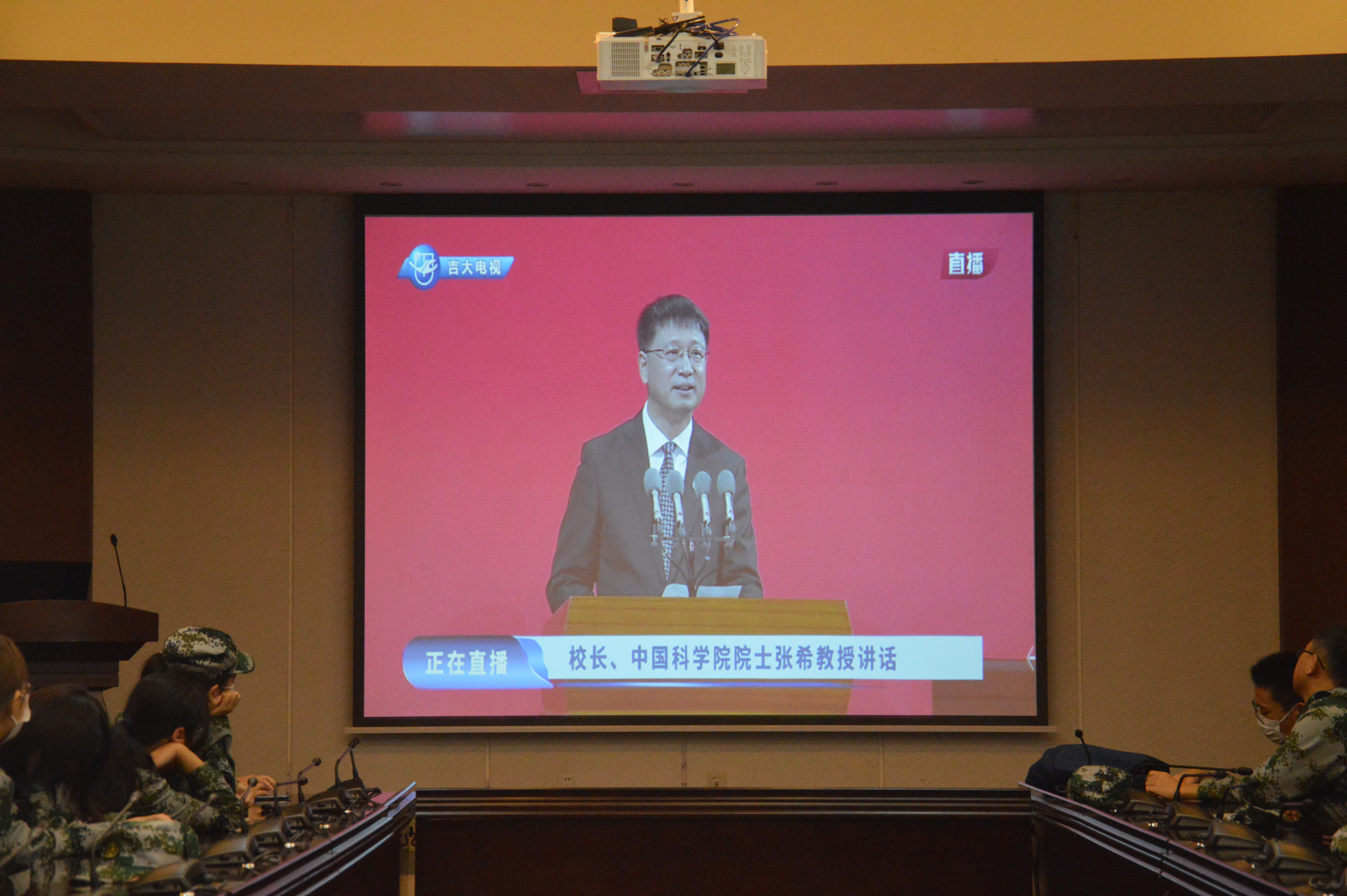 2021年9月28日上午9点,2021级新生开学典礼在中心校区宋治平体育馆举行。本次开学典礼由公司党委常务副书记冯正玉主持,公司相关领导同志、院士、哲学社会科学资深教授等代表出席了典礼。鉴于当前趋紧的疫情防控形势,此次开学典礼采用线上线下相结合的方式举行。2021级新生于匡亚明楼第一会议室设置的分会场参加了线上典礼活动。公司辅导员马嘉男老师与2021级全体新生共同观看了开学典礼直播。