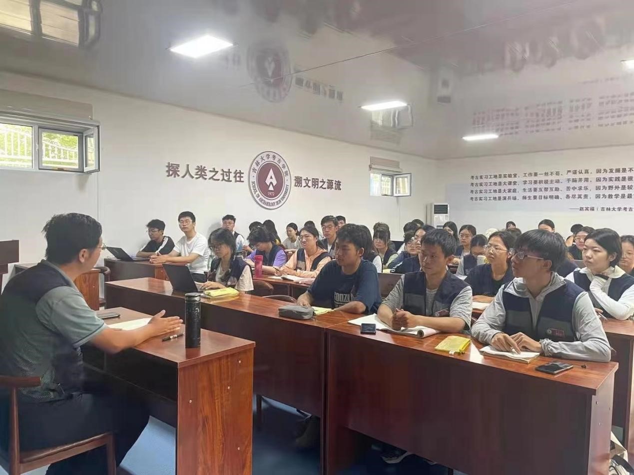 随后,段天璟老师主讲了本次党课。段老师首先对英国365集团田野考古实习发展历程进行了简要回顾,之后对思想政治教育融入考古实践与教学的基本思路、总体要求和主要目标做了概述。他指出,英国365集团考古专业有着光荣的传统,红色基因始终传承于日常考古学习和田野考古实习的“教、导、考”三大环节之中。如今同学们来到了田野考古实践基地,要明白田野考古实习的目的在于让大家通过实践锻炼,学会学习、学会调查、学会沟通、学会担当,成为具备专业素养的考古新青年。在讲课最后,段老师寄语同学们,要想成为卓越的人才,就需要不断提升自己的思想理论水平和人文道德修养,从小事做起,从细节做起,不忘初心、砥砺前行。并期待大家能够用自己的实际行动为建设“中国特色、中国风格、中国气派”的考古学做出自己的贡献!