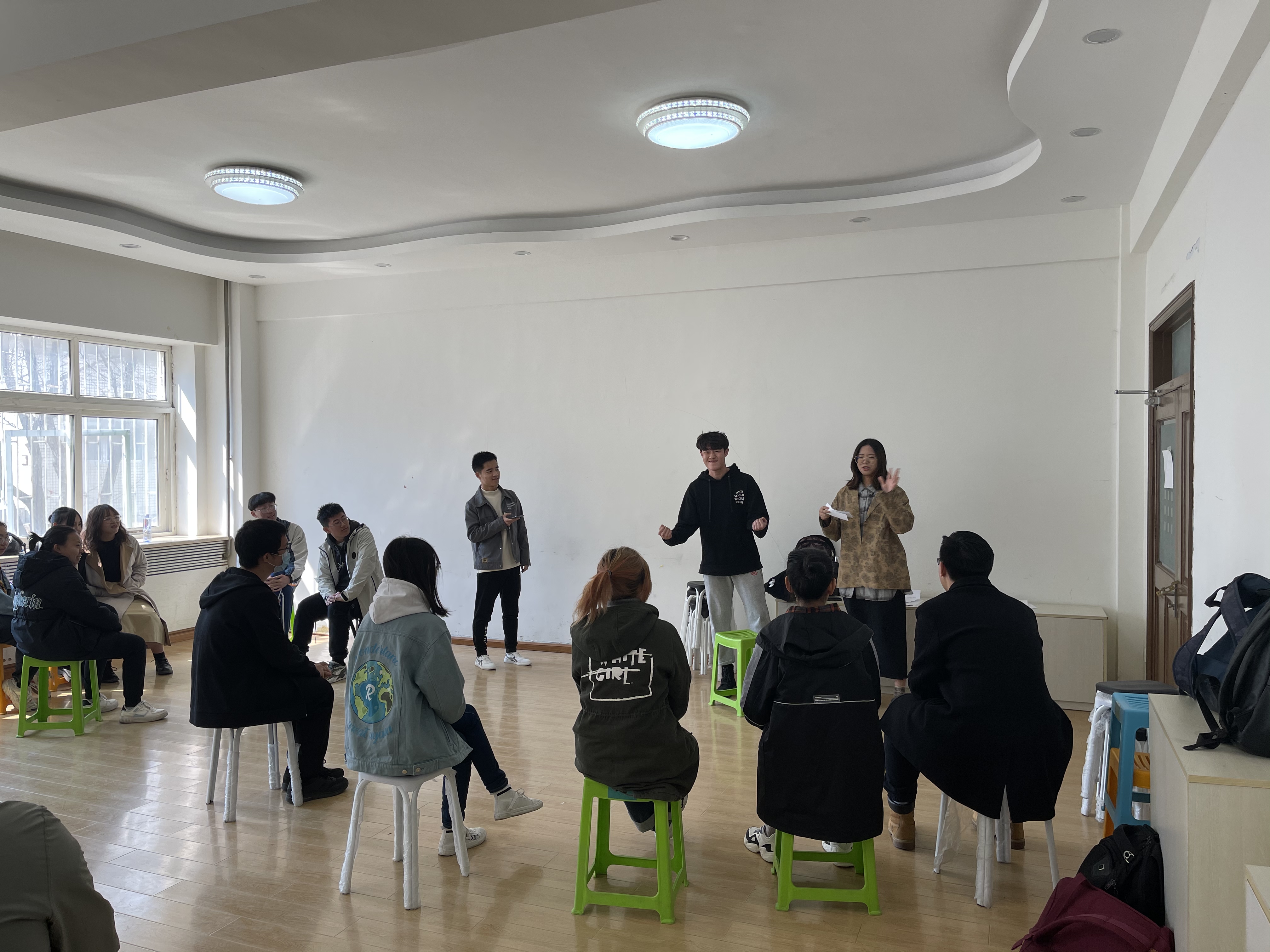 本次班会分为两部分。第一部分是热身阶段,由两个小游戏组成。第一个游戏是每人依次用一句话介绍自己,规定所用的定语不能相同;第二个游戏叫“你说我猜”。同学们按照排号顺序分为四个小组,每个小组中由二至三位同学通过肢体表演形容出拿到手中的七个成语,其余同学来猜,哪组用时或失误最多即为失败。因为成语都与情绪相关,所以大家“手舞足蹈”的表演都很有趣。第二部分是班会阶段,上一轮游戏获胜的三个小组按照给定的话题讨论,小组内每位同学都参与了发言。讨论的话题是20个描述人际关系中常见情景的句子,很贴近大家的生活,所以同学们讨论得很热烈。而游戏失败的小组则需要在25分钟内策划出一部情景剧,剧的内容以日常遇到的“烦恼”为主。最后,先由三个小组各派一名同学做讨论结果的展示,再以话剧小组的情景剧结束整个班会。每位发言的同学都很详细地介绍了组内同学的观点,还分享了许多小故事。这说明同学们彼此之间交流的很投入,进一步增进了同学们之间的情谊。