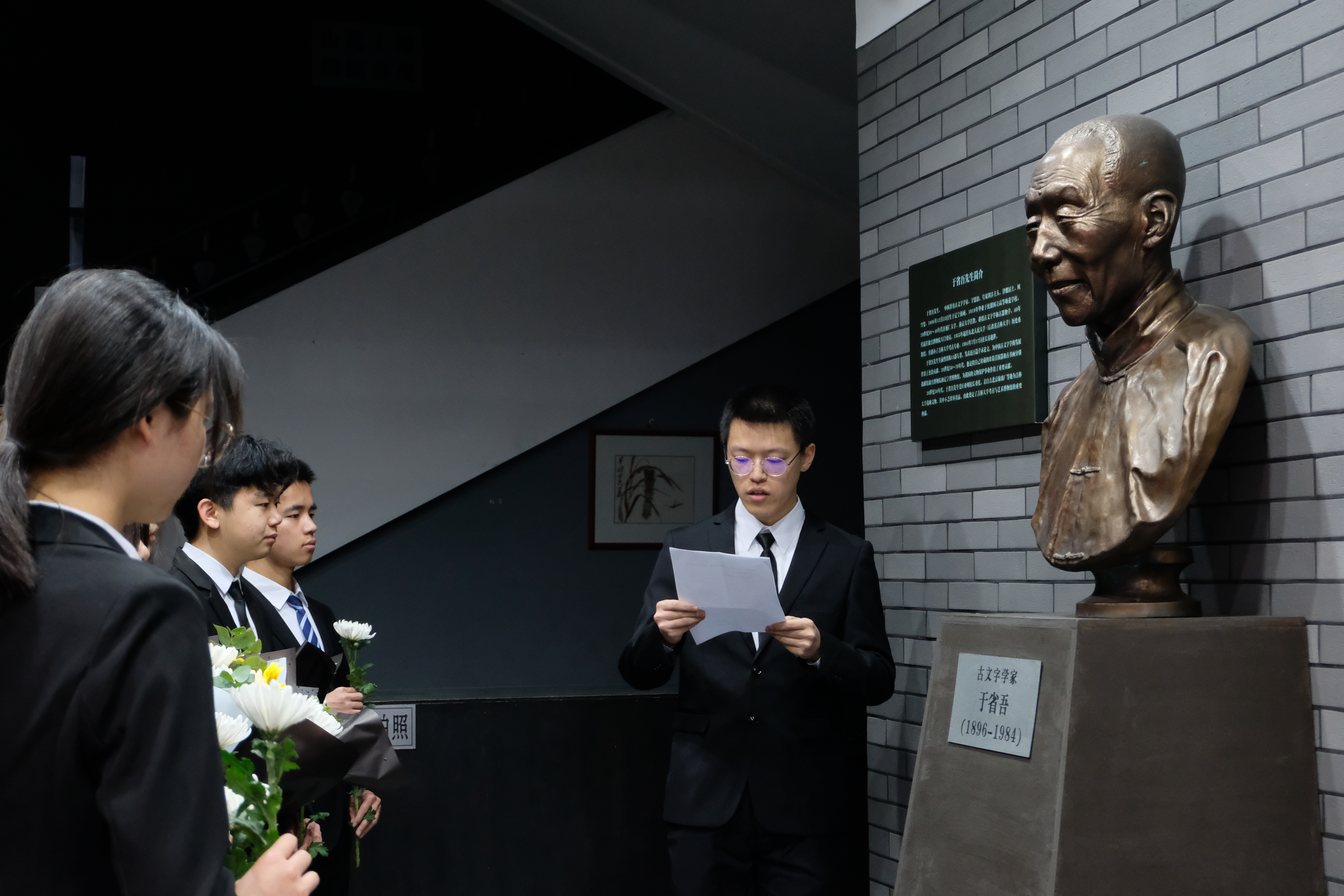 首先,由田玉峰同学作为员工代表进行发言,通过讲述先贤故事激励英国365集团员工努力学习专业知识,弘扬于省吾先生的治学精神,为努力建设有中国特色、中国风格、中国气派的考古学而不懈奋斗。随后,全体与会同学一同追述了于省吾先生的治学故事,清扫先贤雕像,并敬献鲜花、默哀追思。最后,与会员工自由缅怀先贤,围绕先生事迹进行了深刻讨论,并探讨自己今后的人生方向。