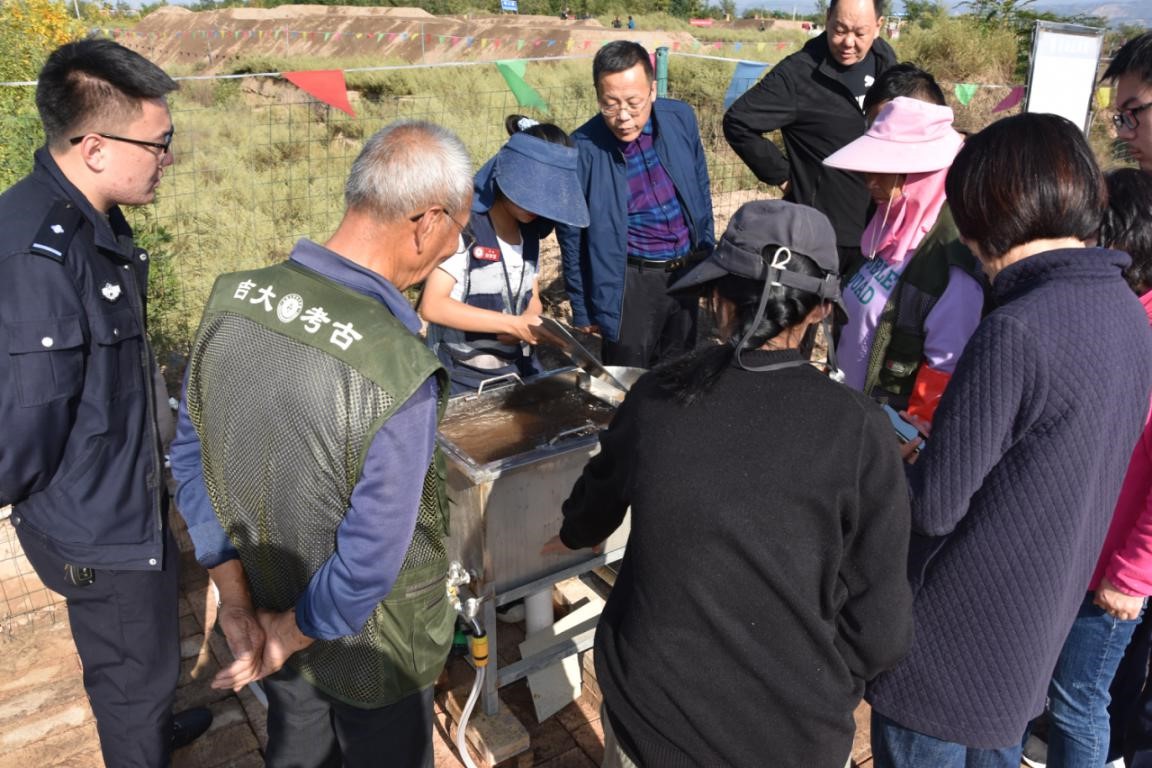 本次活动于当天下午15:00准时开展。员工提前十分钟至工地参观入口,等候各位参观者的到来。在活动中,每位员工首先为各位参观者讲解陈设展板,由浅到深,普及文物和考古知识,随后带领参观者步行环绕整个考古发掘区,让参观者能够近距离观察考古发掘过程,看到考古发掘中的人和物,真正领略到考古的价值和魅力。在讲解中,参观者对于刮面和浮选法的操作饶有兴趣,同学们精彩的讲解也得到了参观者的一致好评。