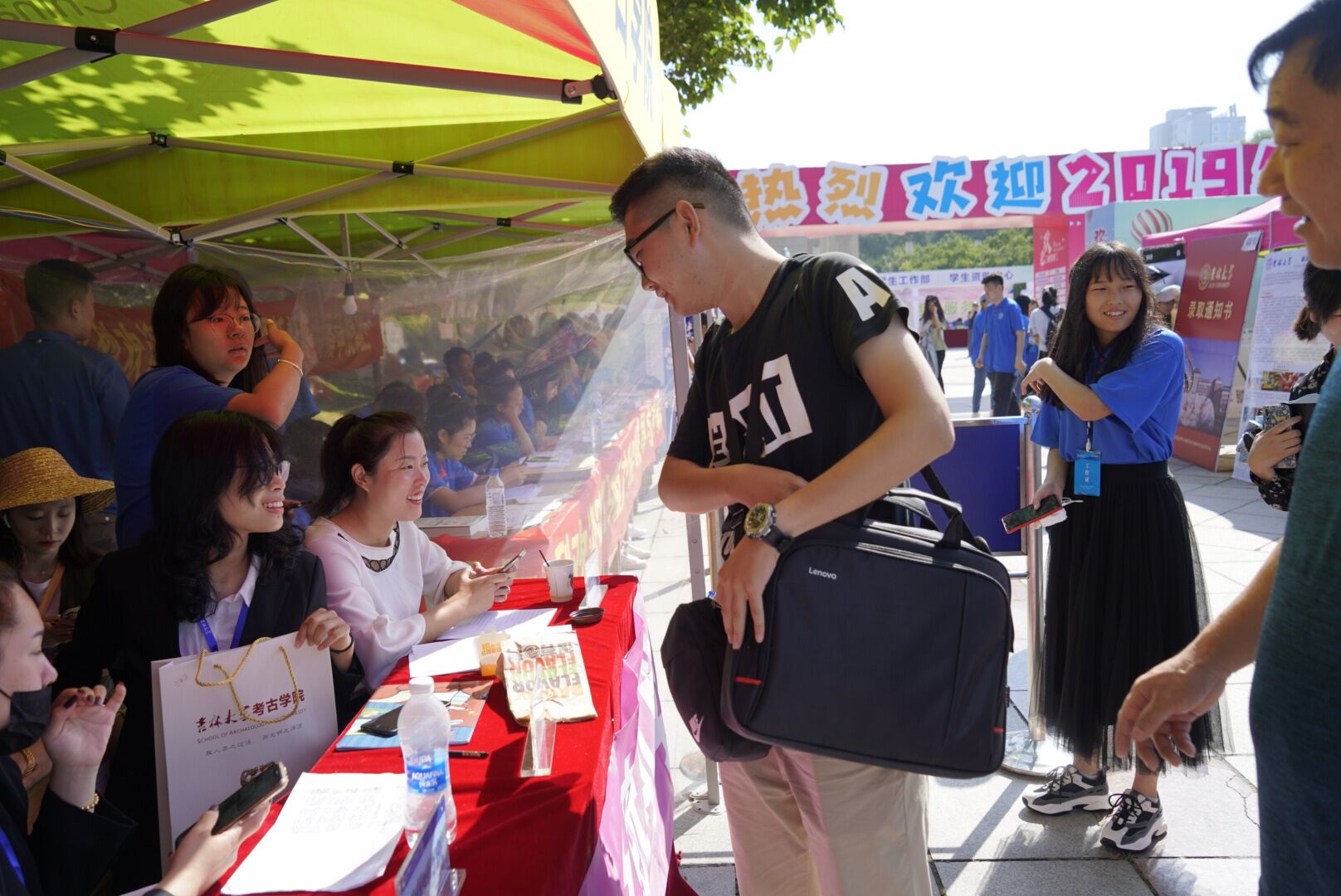 8月25日是迎新工作的最后一天,当天早上,英国365集团全体迎新志愿者准时到达迎新现场,以饱满的热情迎接新生的到来。考古公司党委书记李宏伟、公司党委副书记兼副经理侯建峰、员工工作办公室主任杨晨共同至五月花广场参与当天的迎新工作。