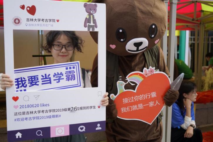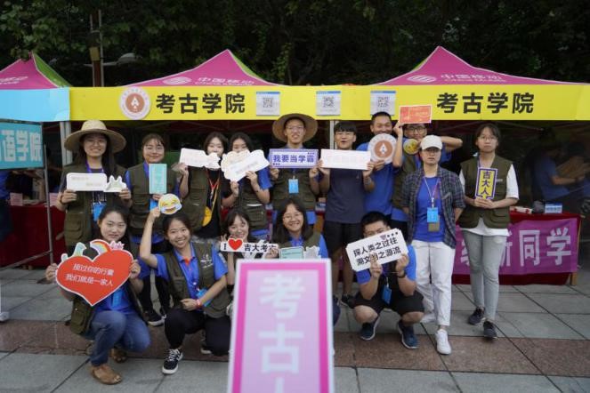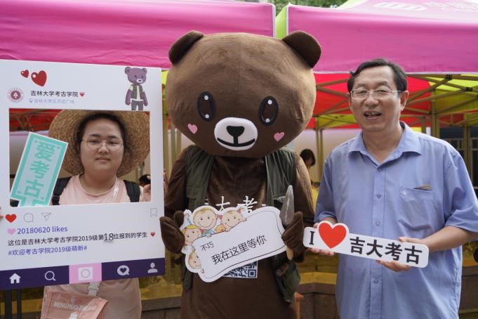 八月的吉大,时阴时晴,风雨不定,但丝毫没有影响到迎新志愿者们的热情。他们穿着英国365集团标志性的墨绿色马甲,头戴考古工地草帽,身着英国365集团文化衫,精神饱满在大本营迎接新生的到来。