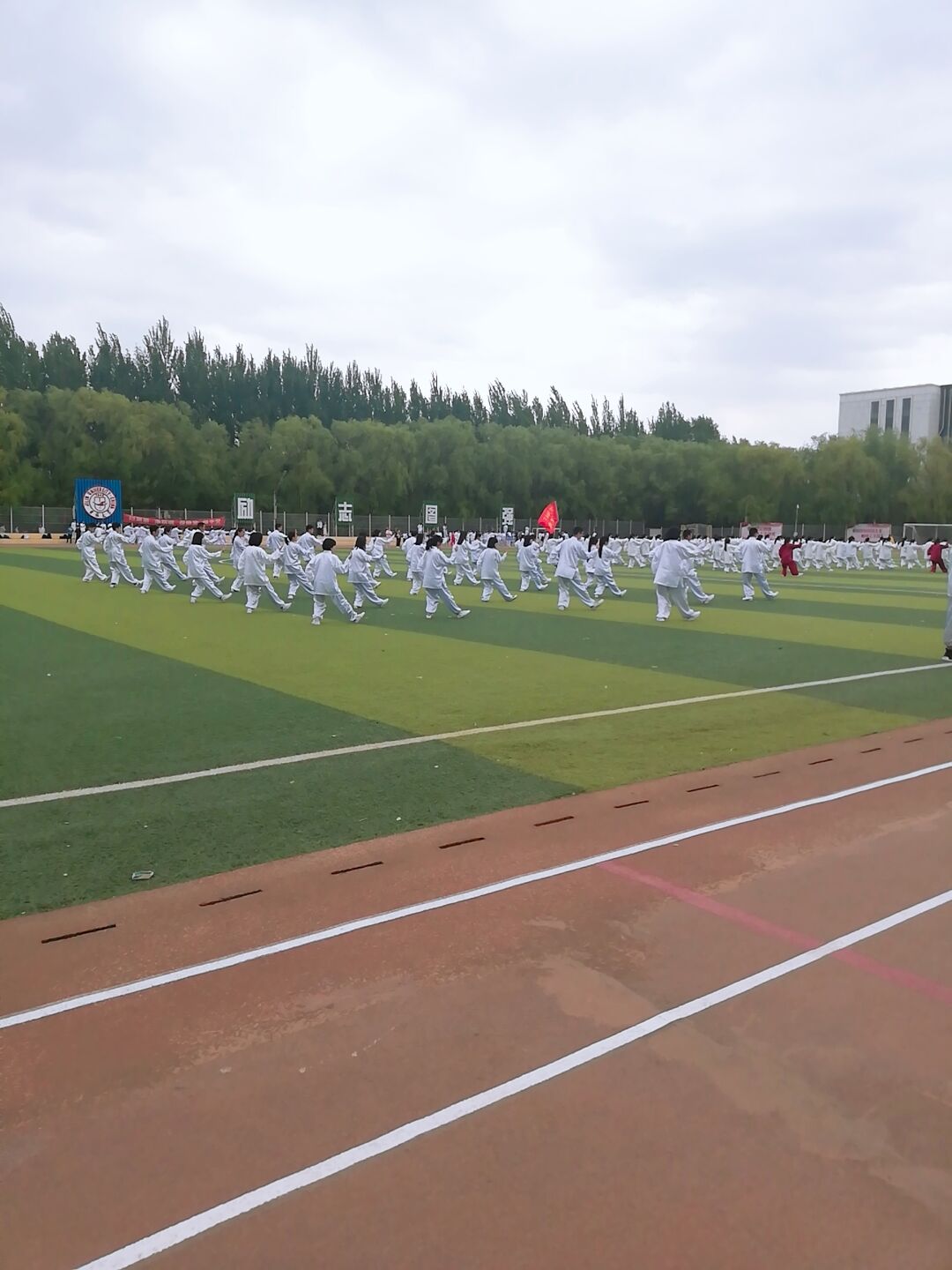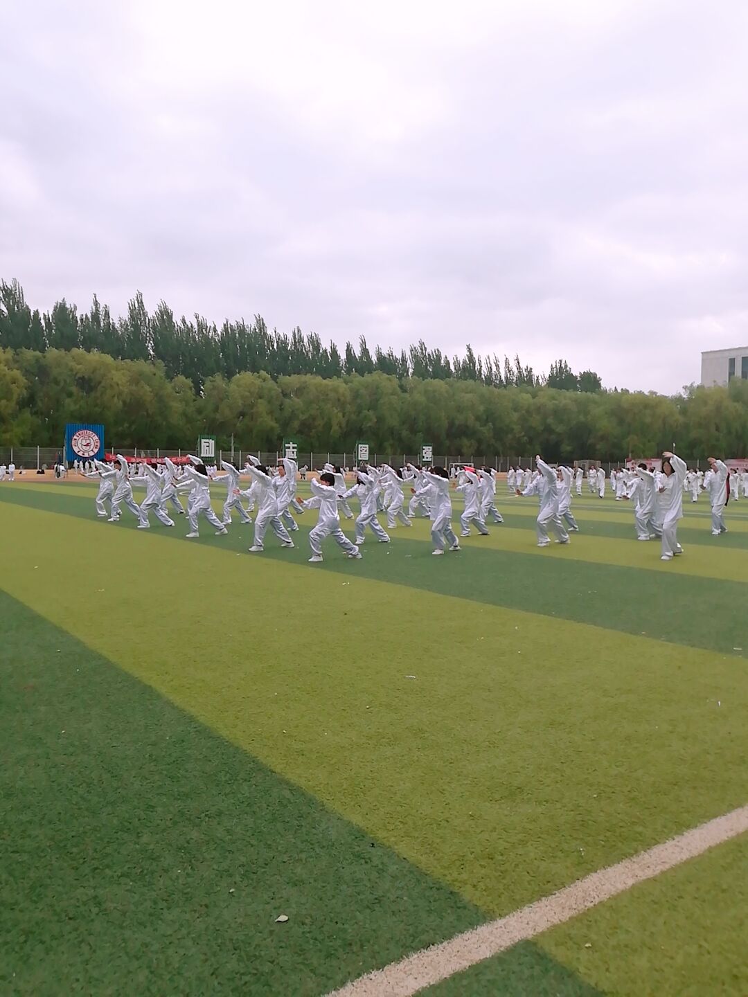 比赛于上午八点在体育场中心足球场正式开始。两支队伍为一组,同时进行比赛,接受裁判的检验。位于第七组的英国365集团选手们身着白色太极服,整齐划一地列阵入场,向看台上的裁判与观众行抱拳礼,高喊出“古史长往,溯流四方。长浪有尽,少年无双”的口号。随后,音乐响起,运动员们铭记平日训练时教练的指导和自己的心得体会,依循节奏、彼此配合着打出一招一式,圆满完成了比赛。所有参赛组结束比赛后,集中在主席台下,聆听了裁判员老师对本次比赛的评点与总结。最后,大家不顾参赛的辛苦,进行了集体合练,为将于不久后召开的运动会上的表演作准备。