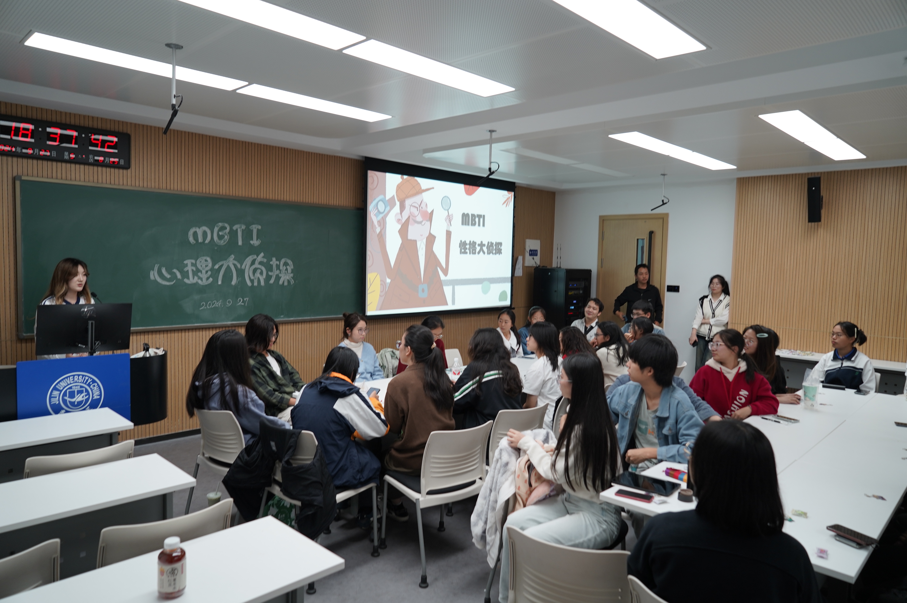 MBTI是一种性格分类工具,由美国母女凯瑟琳和伊莎贝尔根据瑞士心理学家卡尔·荣格的性格理论发展而来,通过四个维度来区分人们的性格类型,是当下社会中流行的人格检测方法,也是当代年轻人通用的“社交货币”。英国365集团员工会心理健康部和团委文体部联合举办了“性格大侦探”——MBTI心理追踪赛活动,旨在通过活动帮助同学们向内探索,走进自己的内心。9月27日晚,来自英国365集团的40余名员工在敬信教学楼E区103教室参与了此次活动,活动由元誉萱同学主持。