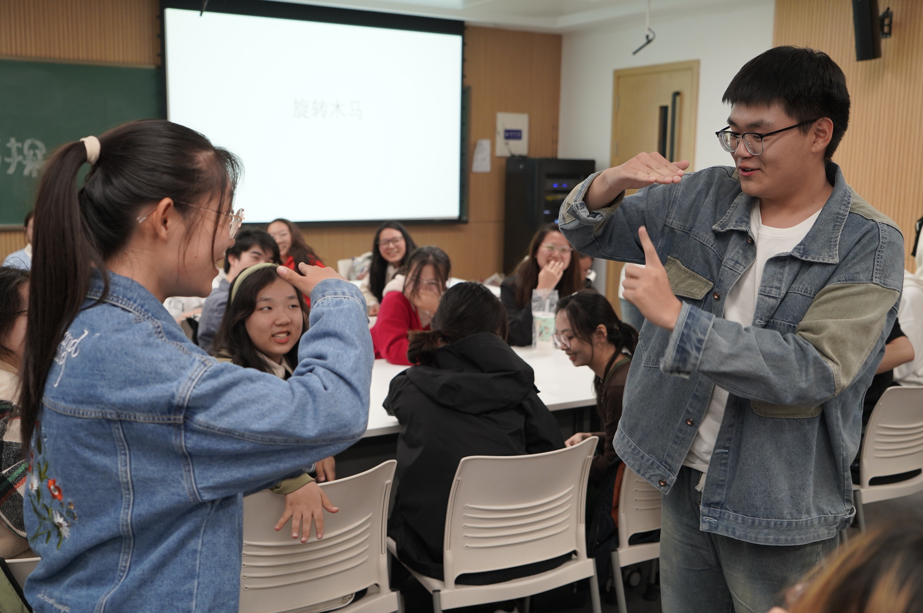 在游戏开始阶段,根据事先统计,组织者将同学们分为A、B、C三个小组,同学们需要通过相互合作和细心观察,找出其他两组的I、E人数,取得游戏的胜利。“你划我猜”环节,在限时比赛中,同学们急智频出,用巧妙的动作引导队友正确猜出词语。“你做过吗”环节,大家轮留分享自己的I、E故事,引得同学们连连惊叹,在活动中更加了解彼此。在最后的猜测其他两组I、E人数环节,B组凭借在前两轮游戏中积累的优势准确地猜出其余两组的E人人数,取得了游戏的胜利,收获了纪念小奖品。