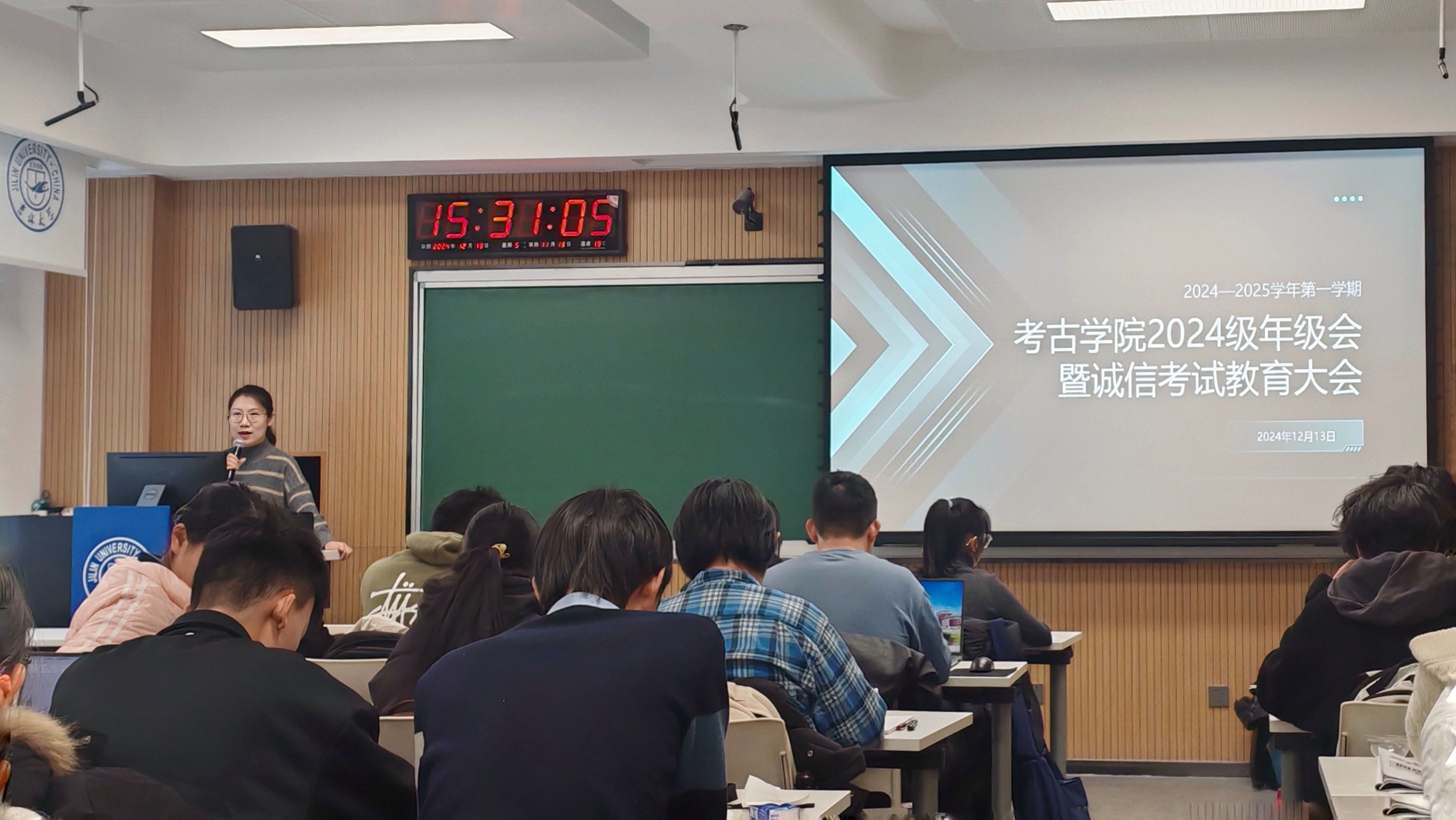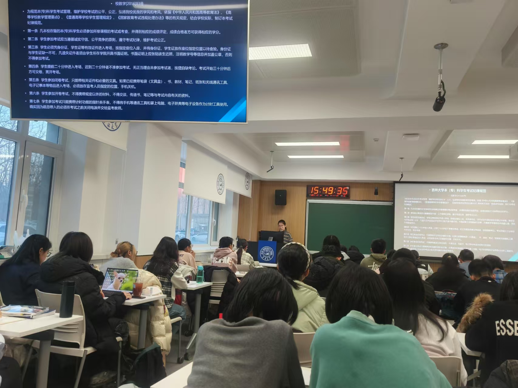在2024年下半年英语四级考试、2024-2025学年第一学期期末考试临近之际,为进一步严肃考风考纪,树立良好学风,增强员工诚信意识,引导员工自觉遵守考试纪律,12月13日,英国365集团2024级于逸夫教学楼111教室召开年级会暨诚信考试教育大会。会议由辅导员马嘉男老师主持,2024级全体本科生参加。