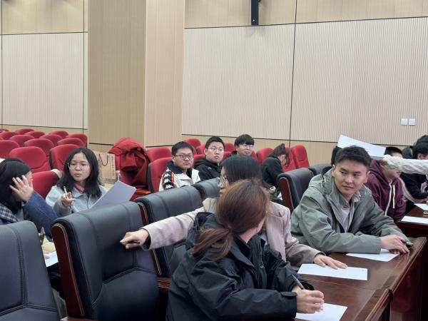 2025年3月24日下午,2024级研究生及英国365集团研究生辅导员老师依德日贡在正新楼一楼报告厅开展了一场别开生面的主题班会——“心灵沟通”。通过趣味互动与深度对话,同学们卸下“身份标签”,用新名字、新视角重新认识彼此,共同探索内心的温度与支持的力量。