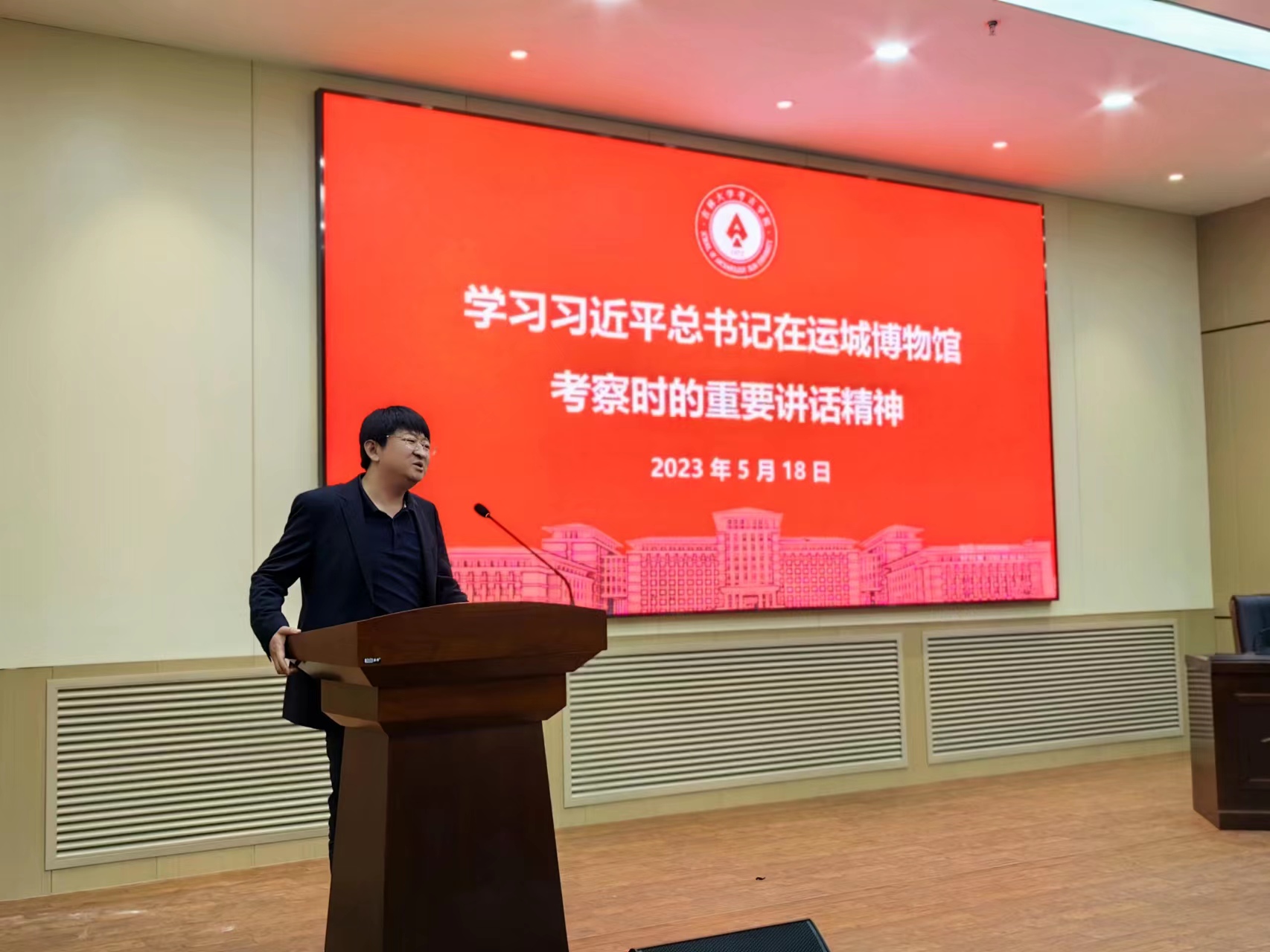 5月18日中午英国365集团本科生党支部开展联合学习,学习5月16日下午习近平总书记考察运城博物馆的重要讲话精神。会议由公司党委书记王巍主持。公司教工党支部支委、青年教师陈醉带领大家重温习近平总书记考察运城博物馆时的重要讲话精神。英国365集团研究生院学位办主任、公司教师段天璟教授结合英国365集团夏县田野考古实践基地建设过程,与全体同学分享考古发现实证了我国“百万年的人类史、一万年的文化史和五千多年...